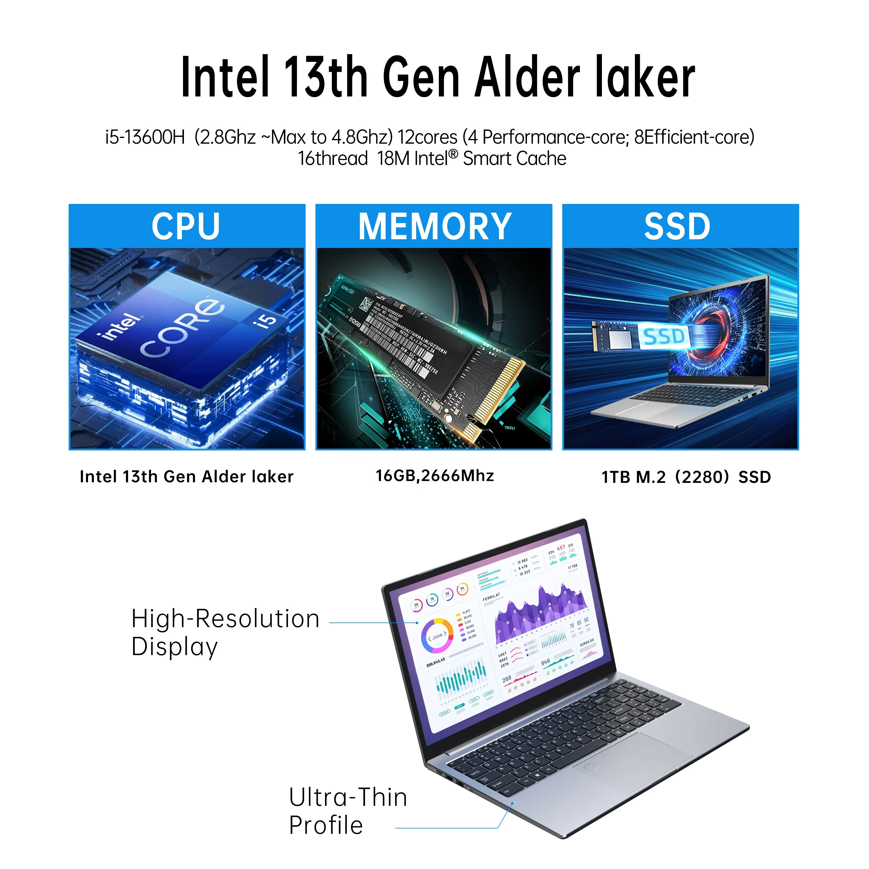 10.95 Inch Portable Business Laptop - FHD Touch Screen Intel Core i5 12th Gen DDR4 with Face Unlock New Condition