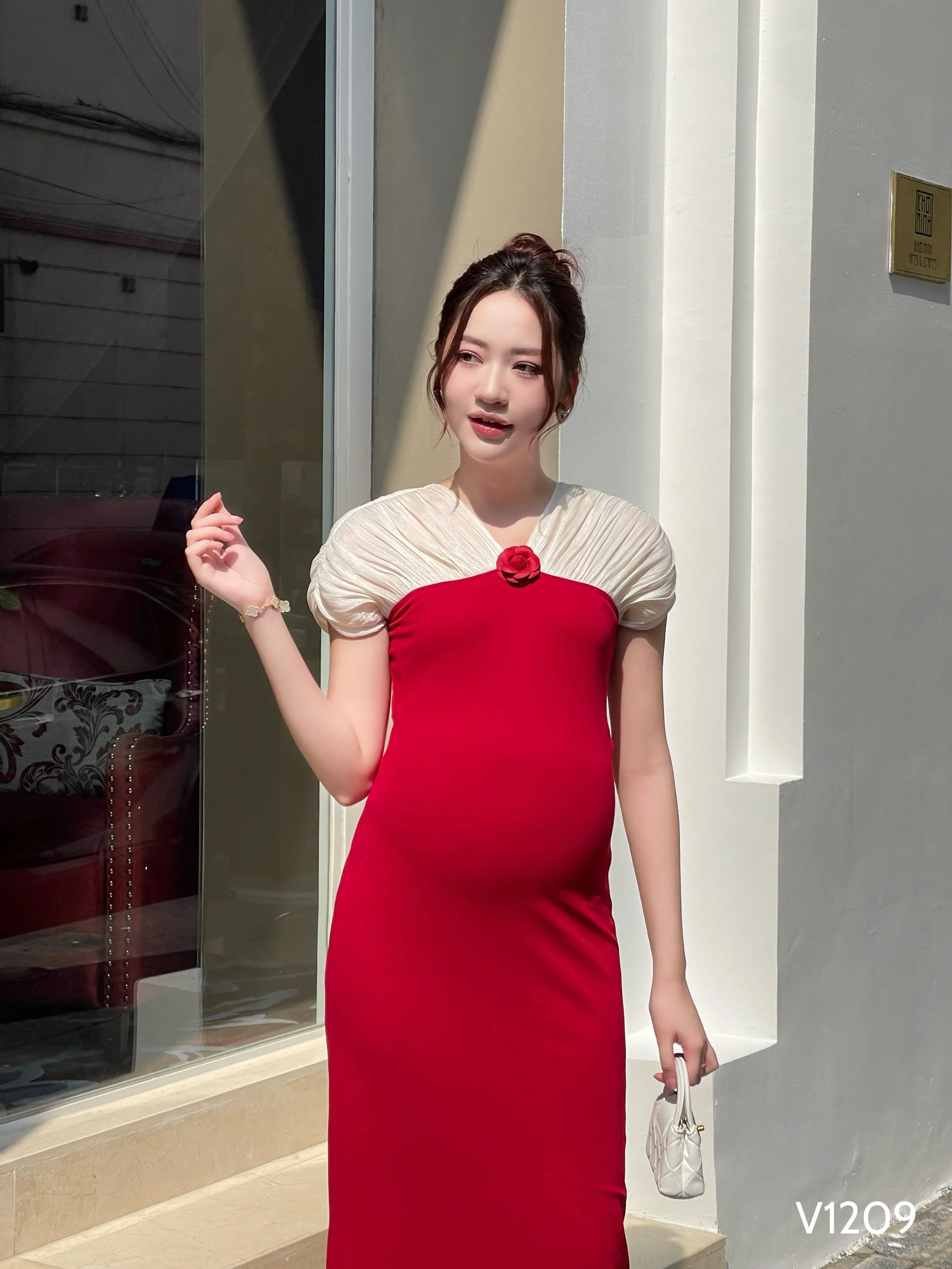 High Quality Summer Maternity Dress with Short Sleeves Anti-Shrink Sweat-Absorbent Fabric Soft Comfortable ODM V1209 Vietnam