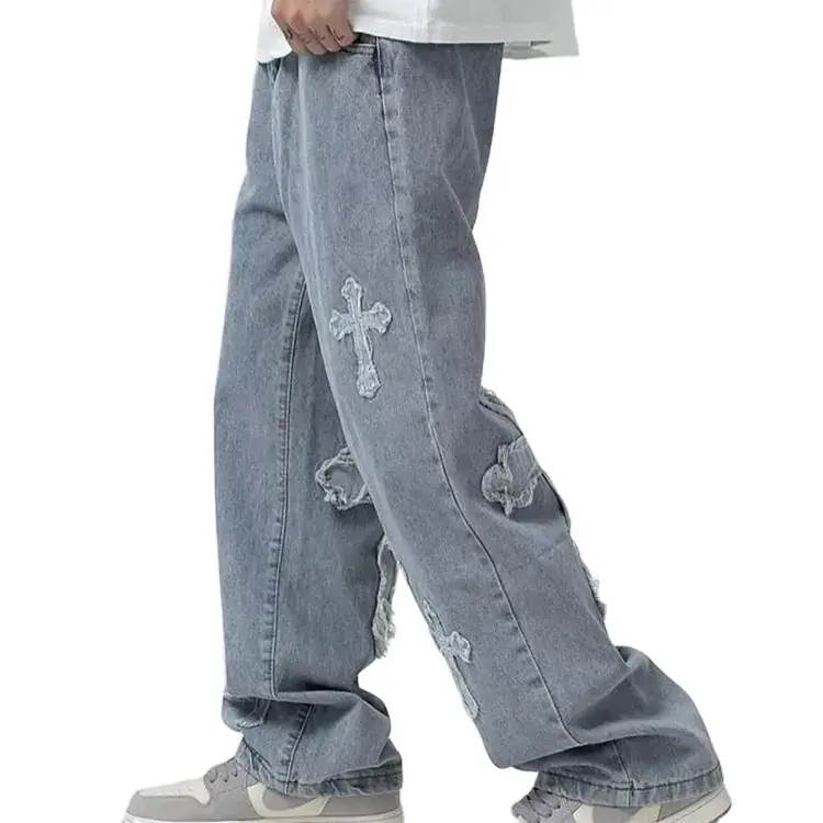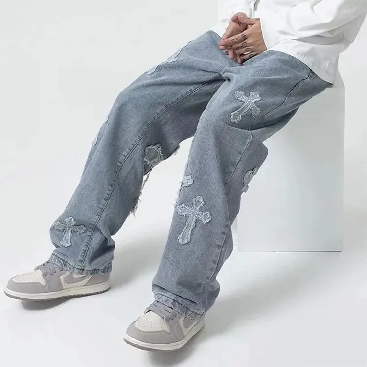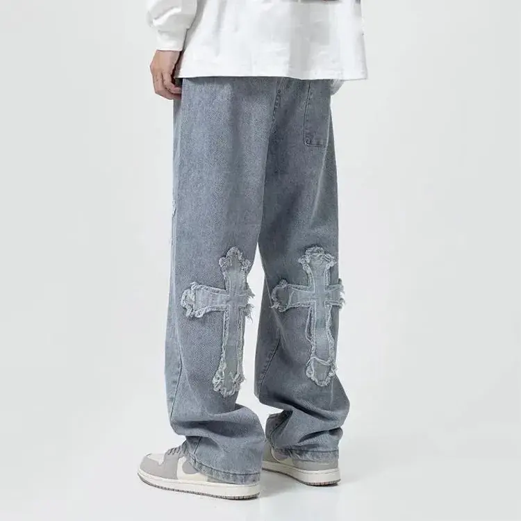 Hip Hop Boyfriend Embroidered Loose Wide Leg Men's High Street Jeans