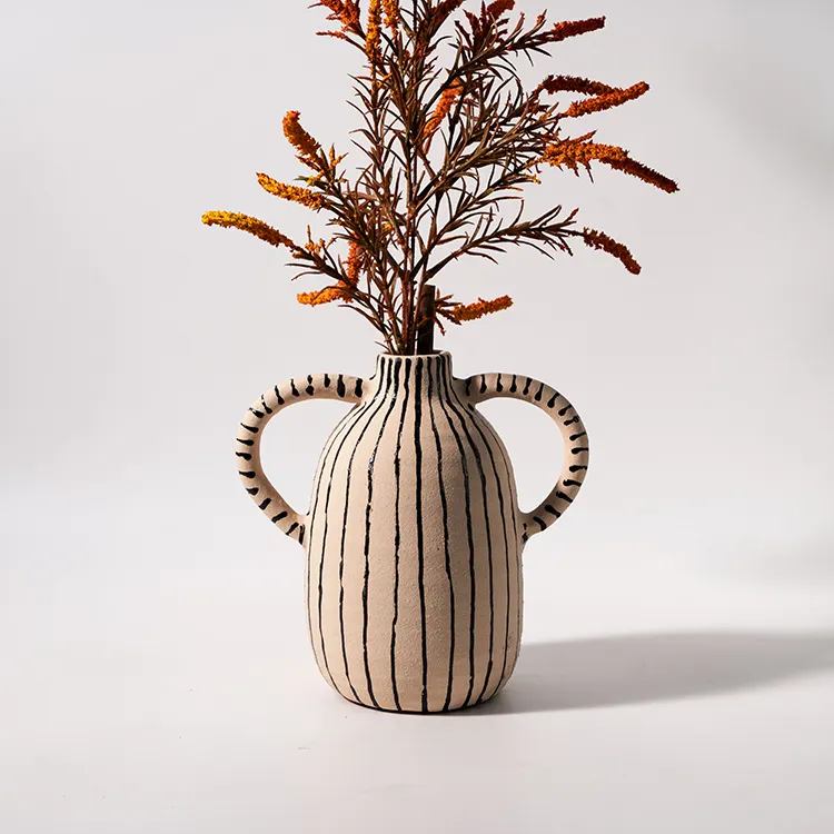 Home Decor Luxury Art Vase Beige Resin Ornaments Interior Home Decoration Double Ear Line Flower Vase