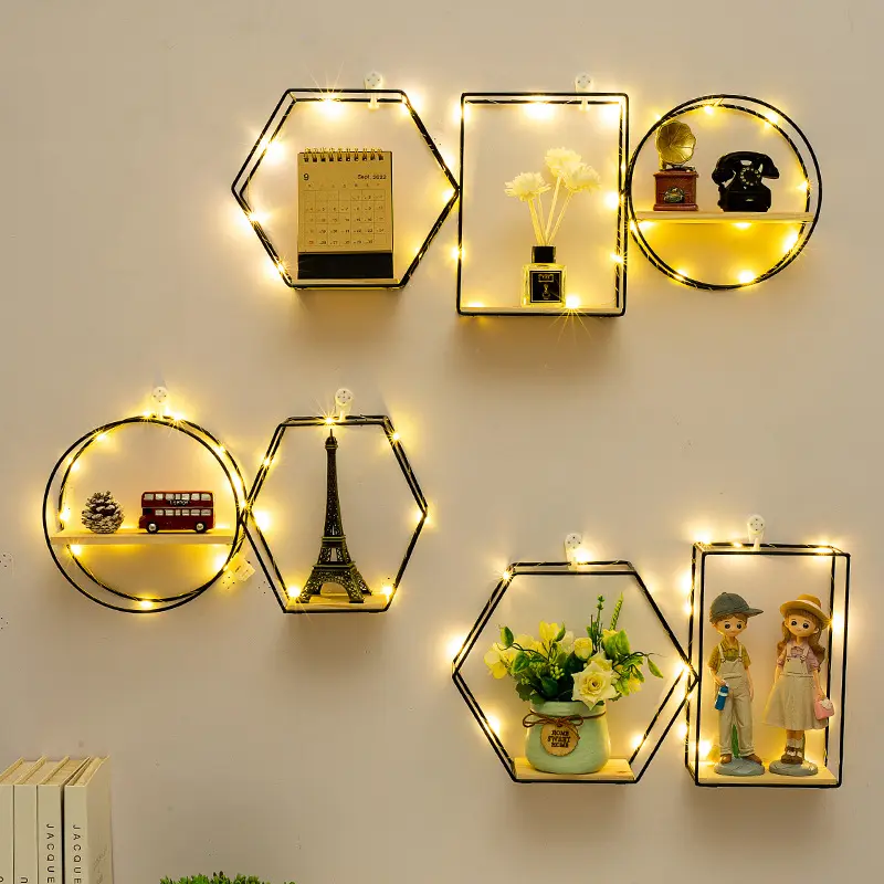 Hot Punch-free Wall Iron Decorative Flower Stand Flower Pot Decoration Storage Rack Suitable for Bedroom Living Room Shelf