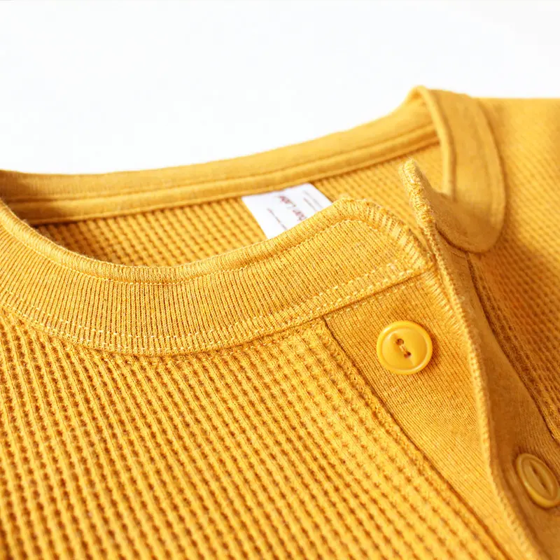 Knit Waffle 100% Cotton Blank Henley Neck Custom logo Long Sleeve t Shirt for Men