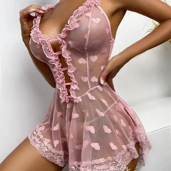Ladies Transparent Lace Mesh Sleeveless Dress Hot Sale Summer Thermal Sexy Lingerie for Girls' Night Out Wholesale