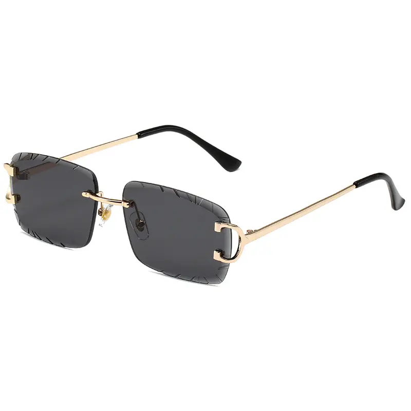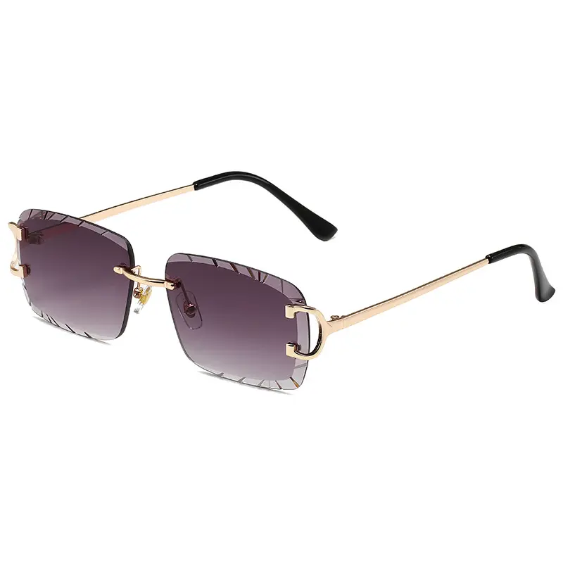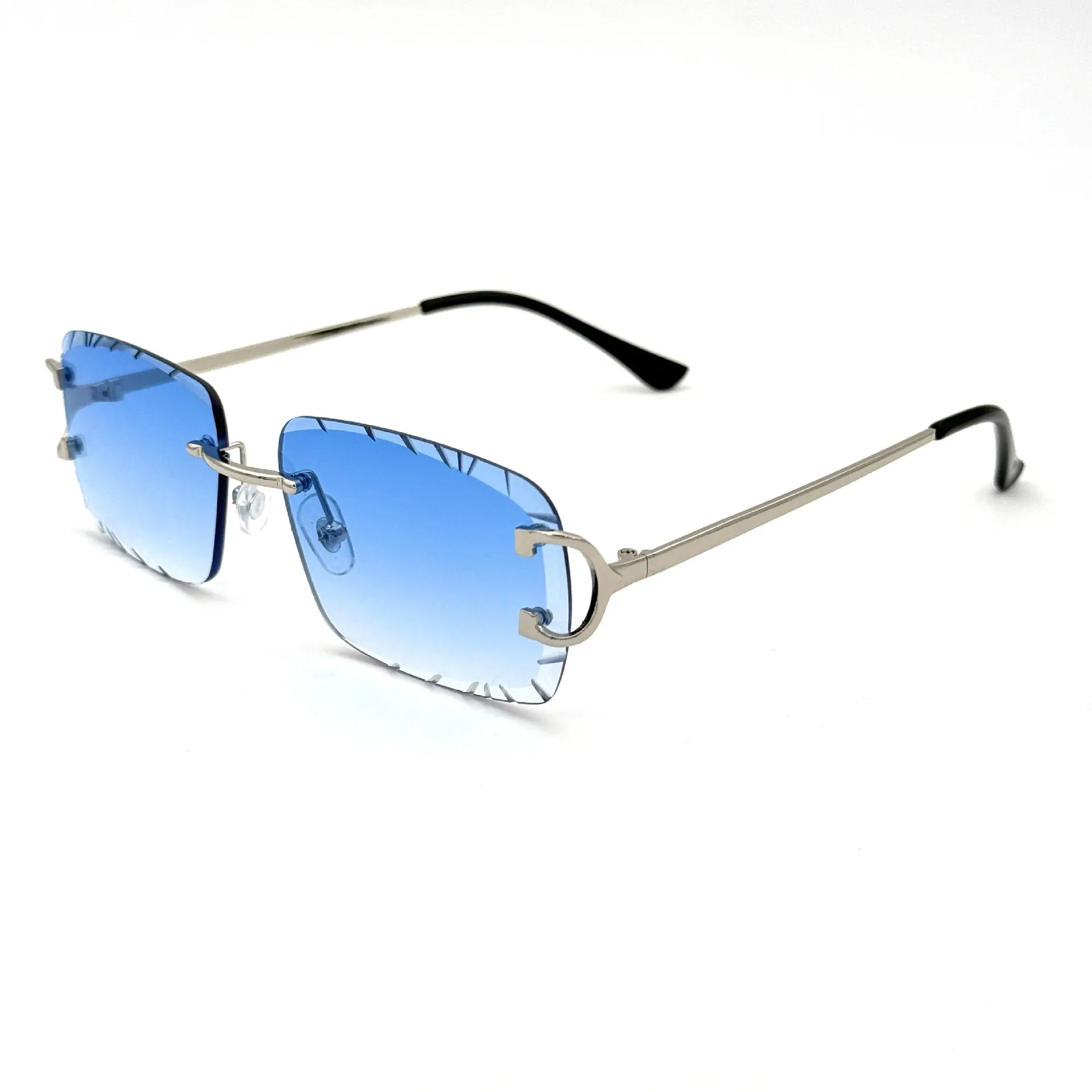 Lucky Custom logo Designer Metal Rimless Square Sunglasses Trendy Classic Shades Custom Diamond Cutting Sun Glasses Men