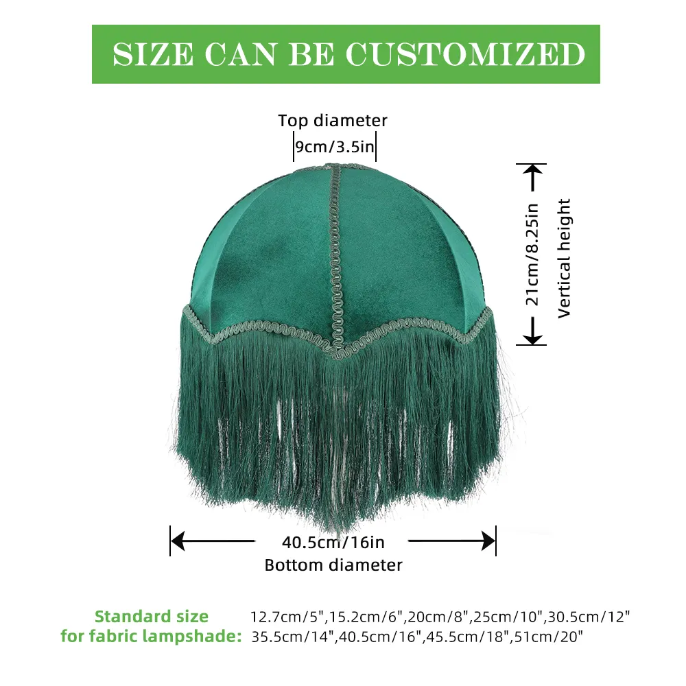 Luxurious European Victorian Traditional Indoor Large Fringe Lampshade Velvet Fabric Metal Handmade Eco-Friendly Antique Design