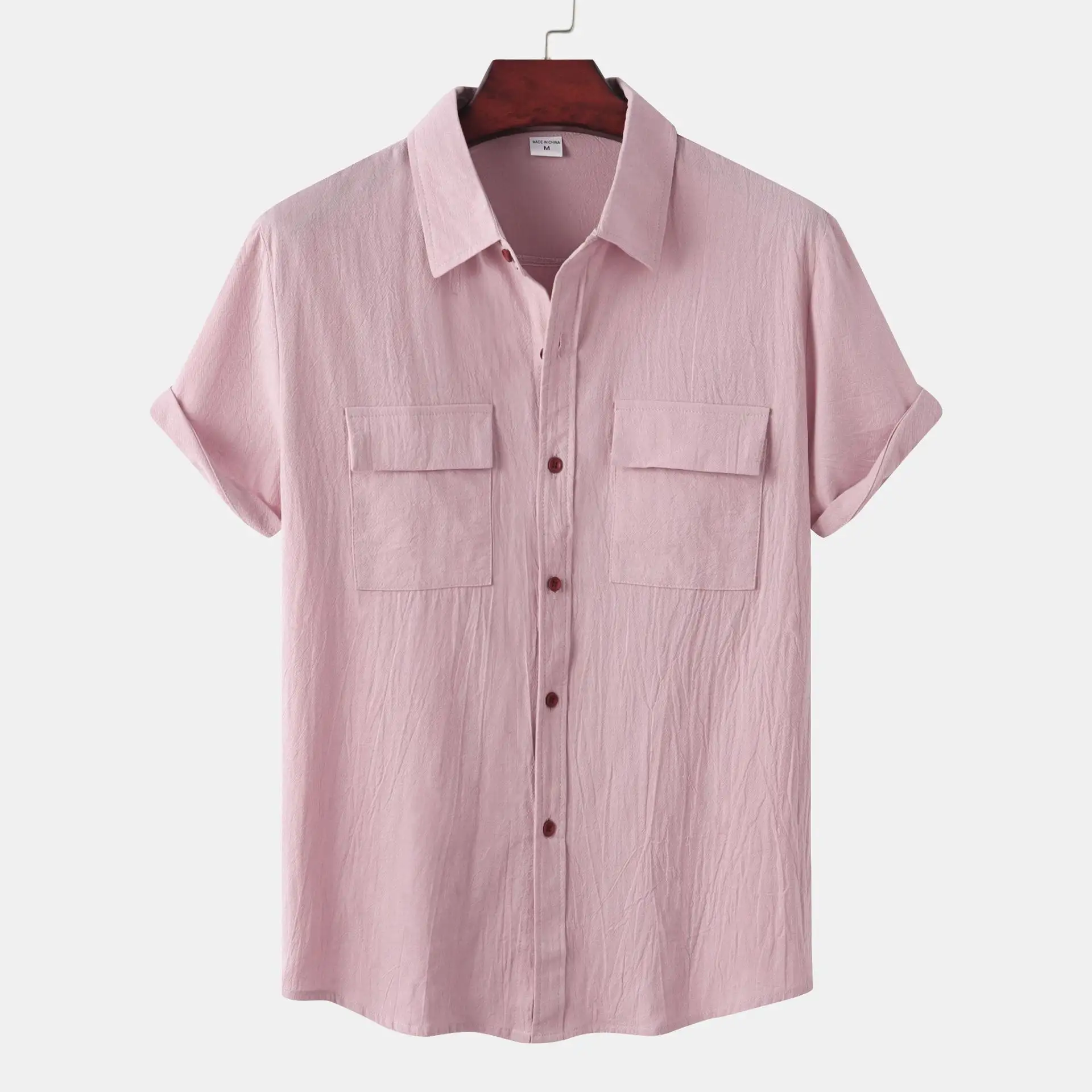 Men Cotton Linen Shirt Summer Short Sleeve Lapel Collar Button Solid Color New Fashion Clothes for Men Tops Casual Shirt