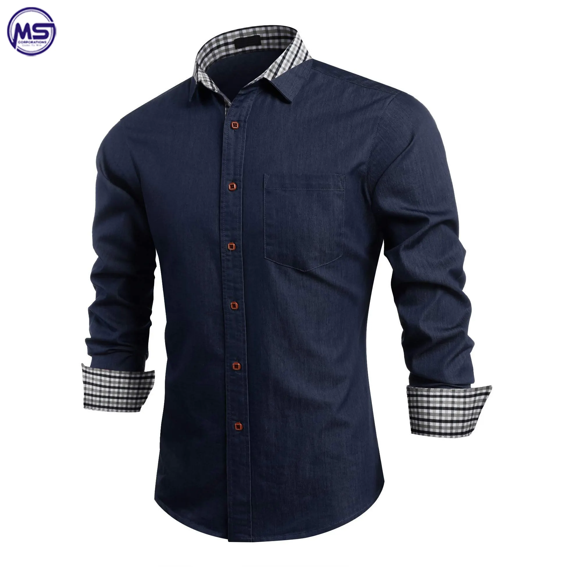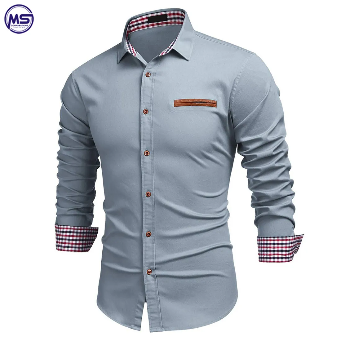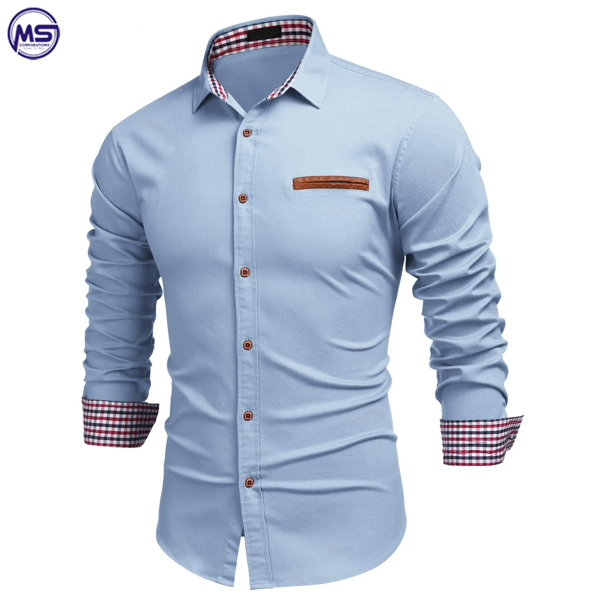 Wholesale Fashion Spring and Autumn Popular Men's Casual Shirts Pocket Cotton Slim Long-sleeved Fit Denim Men Shirts