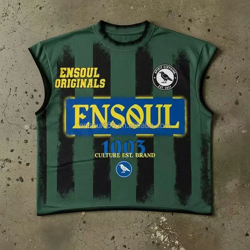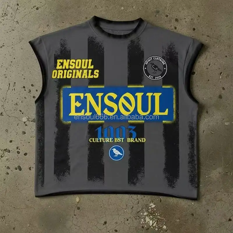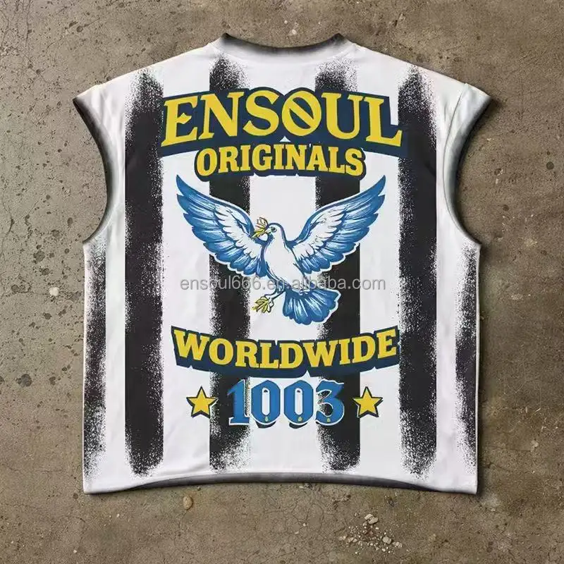 Men's Heavyweight Custom Sleeveless T-Shirts Spray Paint Striped Jersey Streetwear Spring Graphic Tee with Dove & Crow Print