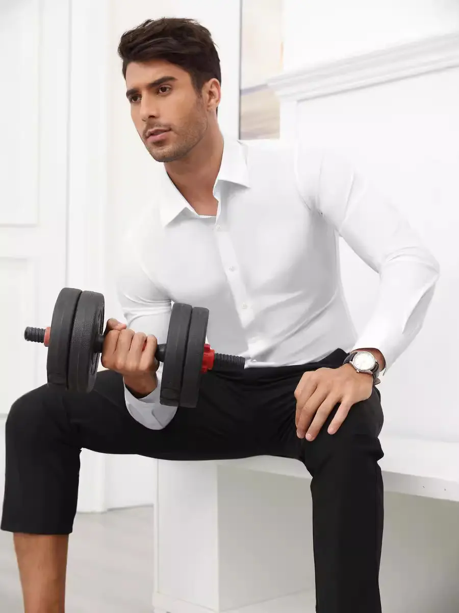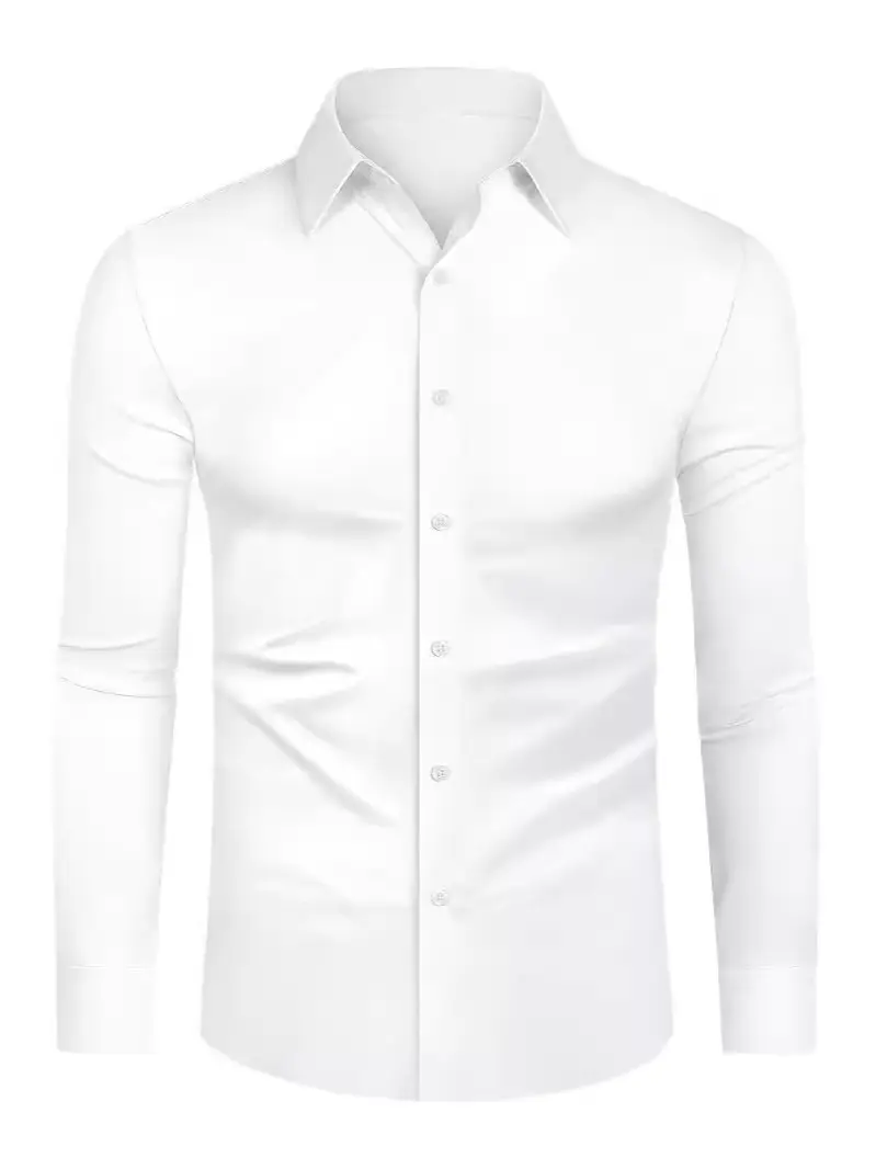 Men's High-End Solid Long-Sleeved Business Casual Shirt Four-Sided Stretch Workwear White Plus Size 200 Grams Foreign Trade