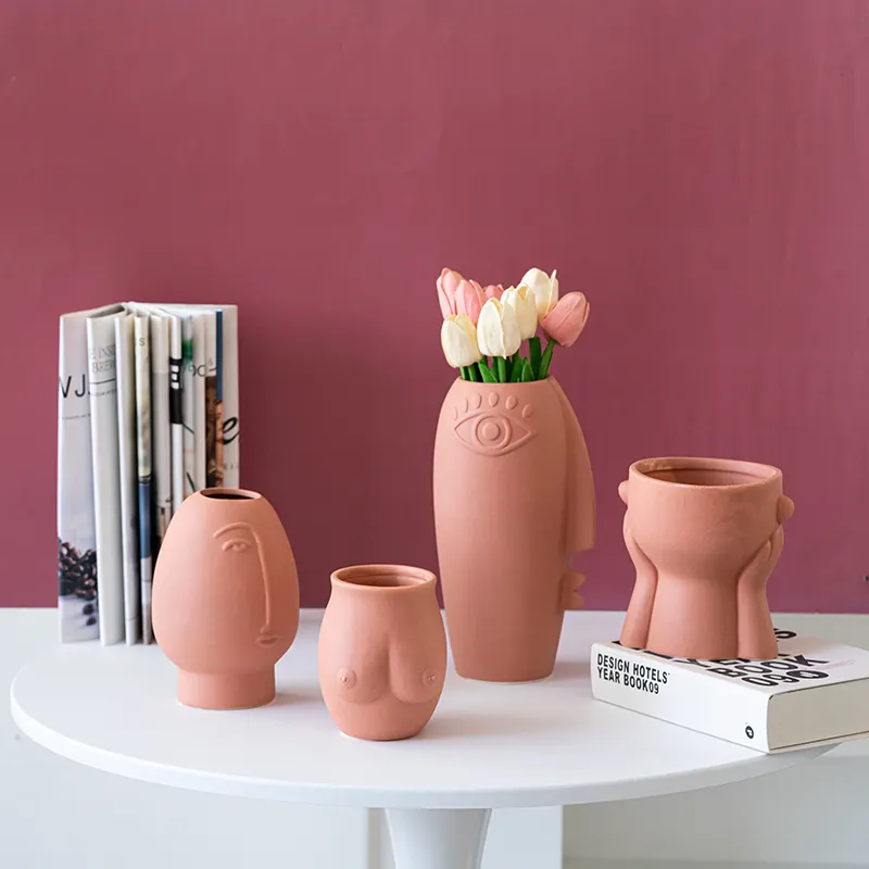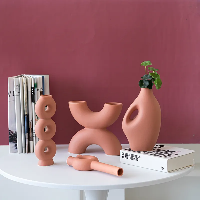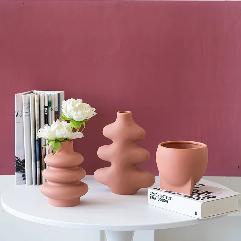 Minimalist House Decoration Luxury Vase Accessories Nordic Pink Color Ceramic Vase for Home Decor