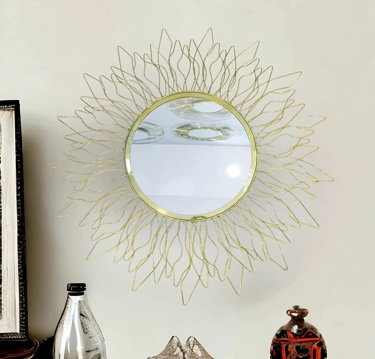 Modern Home Hotel Bathroom Wall Hanging Mirror At Best Price Attractive Design Floral Shape Wall Mirror in Round Frame