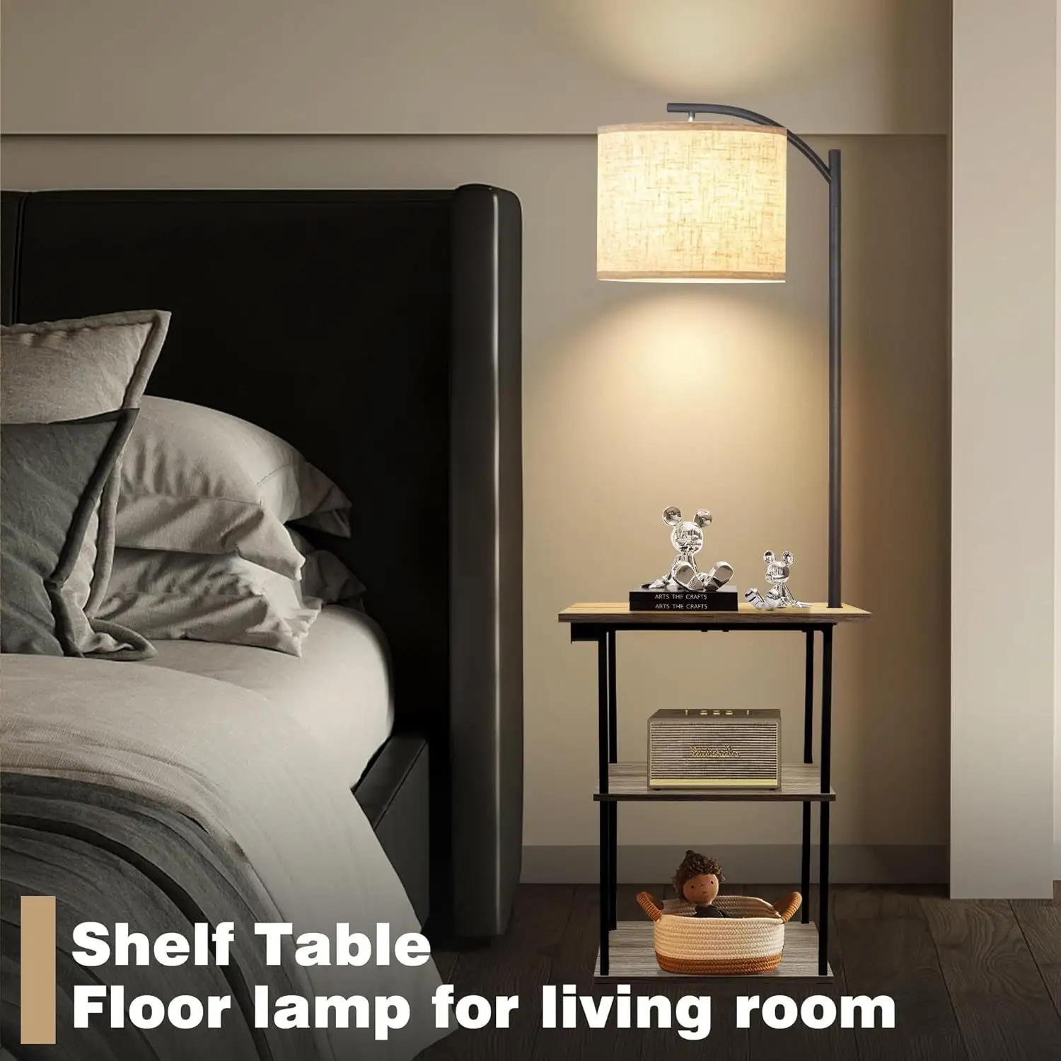 Modern LED RGB Light E27 Base USB Charging Floor Lamp with Storage Fabric Sofa Light for Bedroom and Living Room Decor