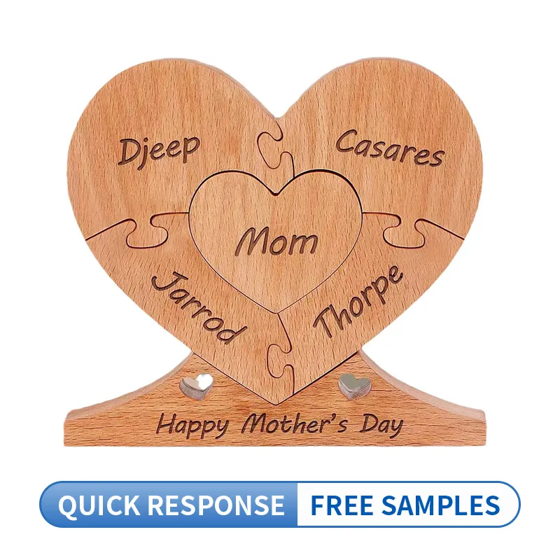 Mother's Day Wooden Heart Puzzle Decor Handmade Customizable love Gift Wholesale Solid Wood Home Decoration for Mother's Day