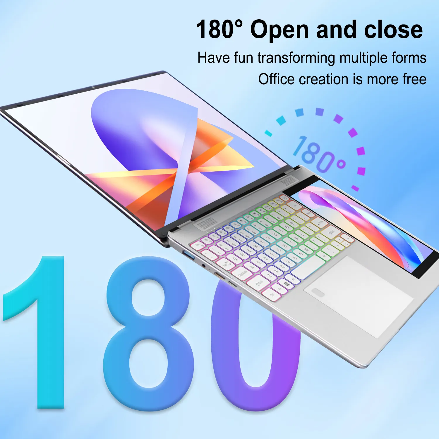 New 15.6inch 2-in-1 Dual Screen Laptop Intel N150 Windows11 DDR4 32GB SSD 1TB Wireless Fingerprint Unlock RGB Backlit English