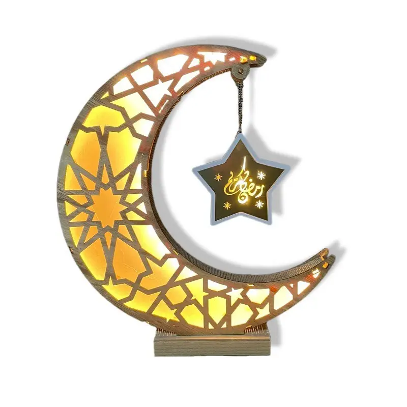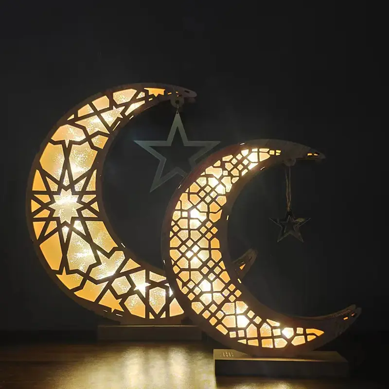 New Antique Festival Moon Star LED Lights Wooden Home Crafts Decorative Ornaments Wood Lantern