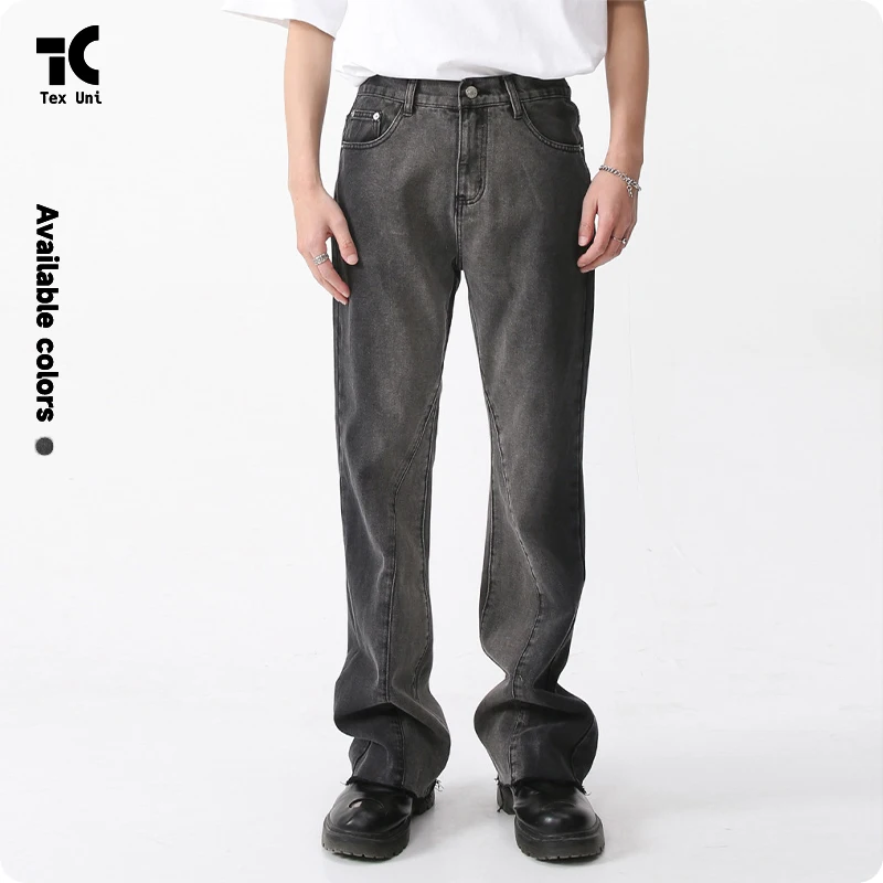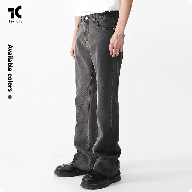 New Arrival Men's Korean Style Washed Vintage Elastic Waist Gradual Flare Bootcut Jeans