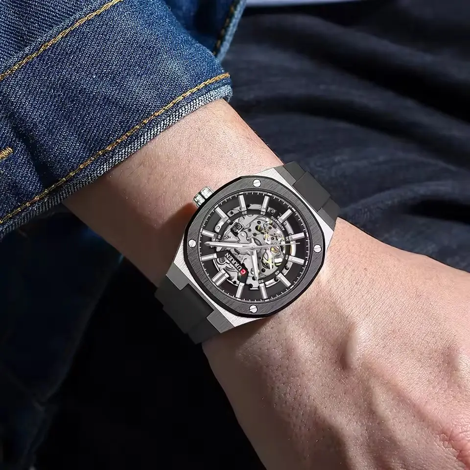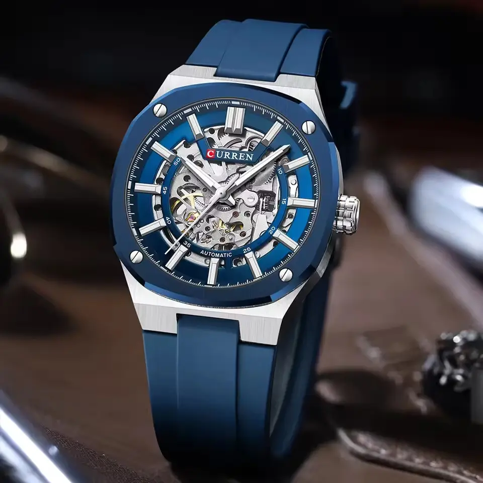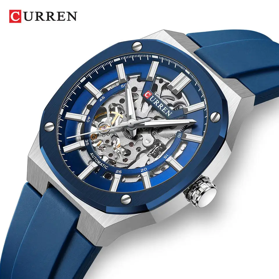 New CURREN 8485 Original Watch Automatic Mechanical Wristwatch 41mm 20mm Waterproof Silicone Strap Luminous Sports Fashion Men's