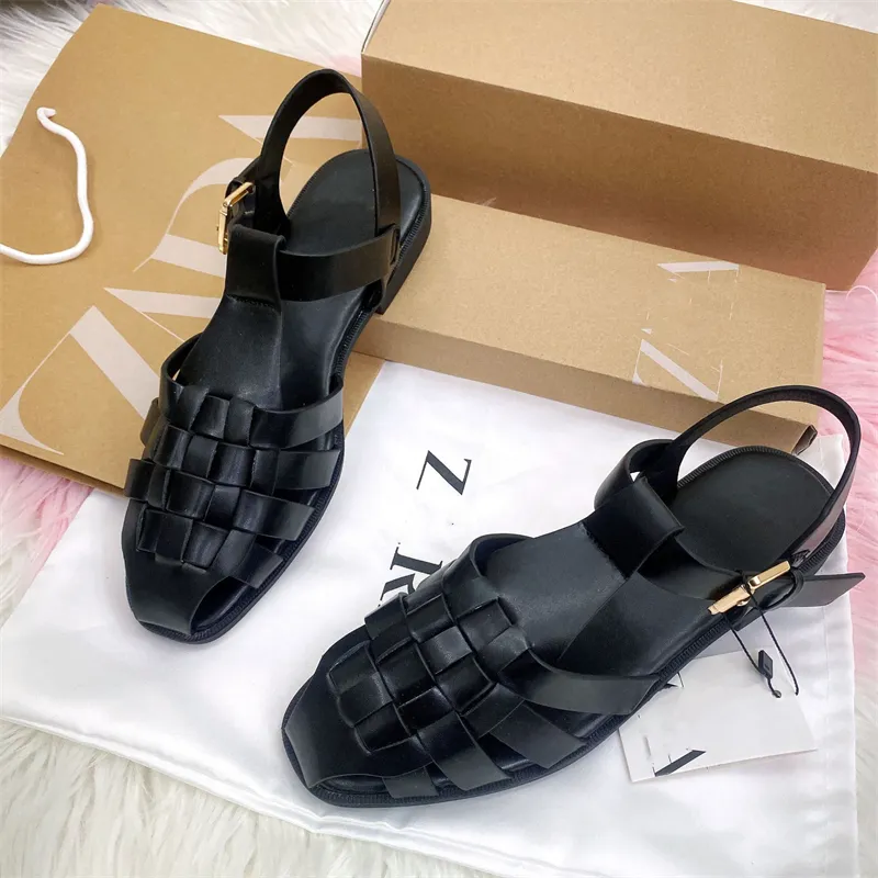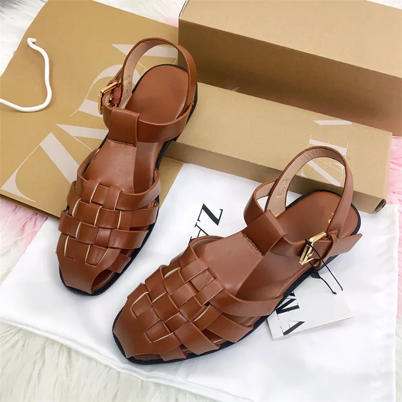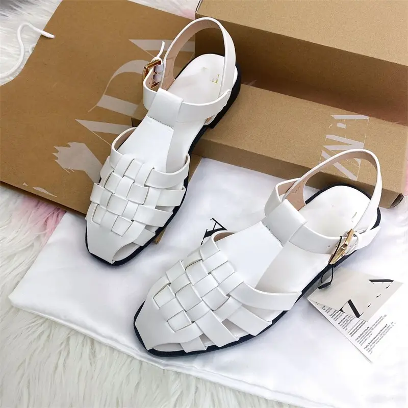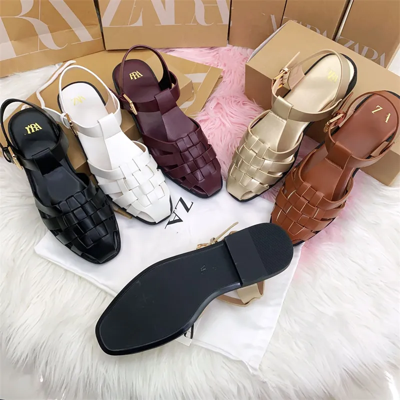 New Design Women Roman Sandals Female Fashionable Outdoor Summer Leather Sandals Back Strap Ladies Woven Flat Sandals