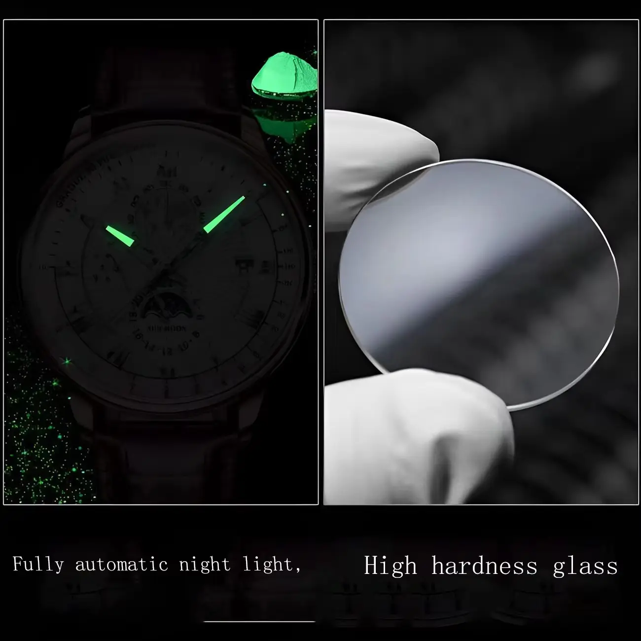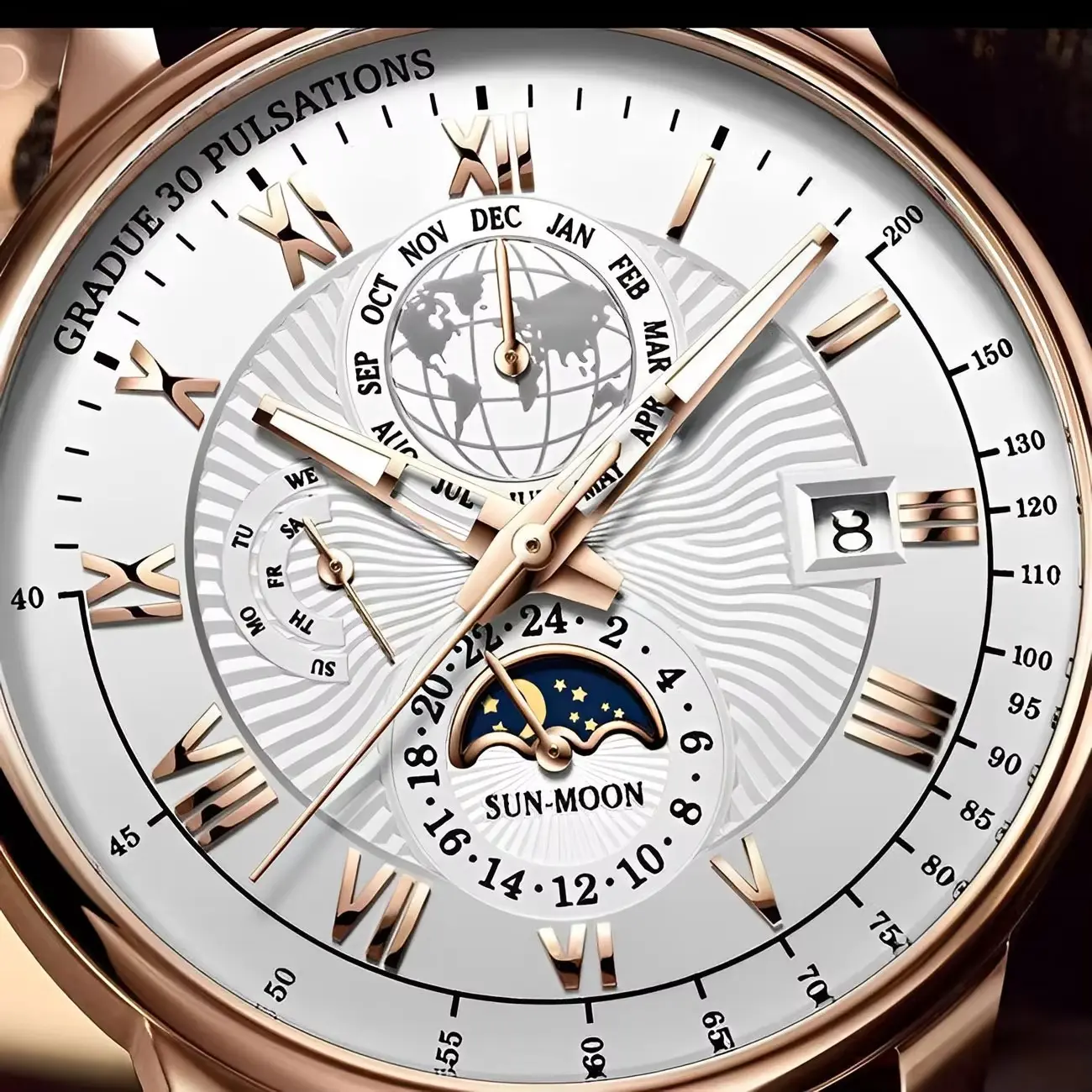 Factory Custom Stainless Steel case Leather Trap Japan Movement Men's Automatic Sun and Moon Phase Watch