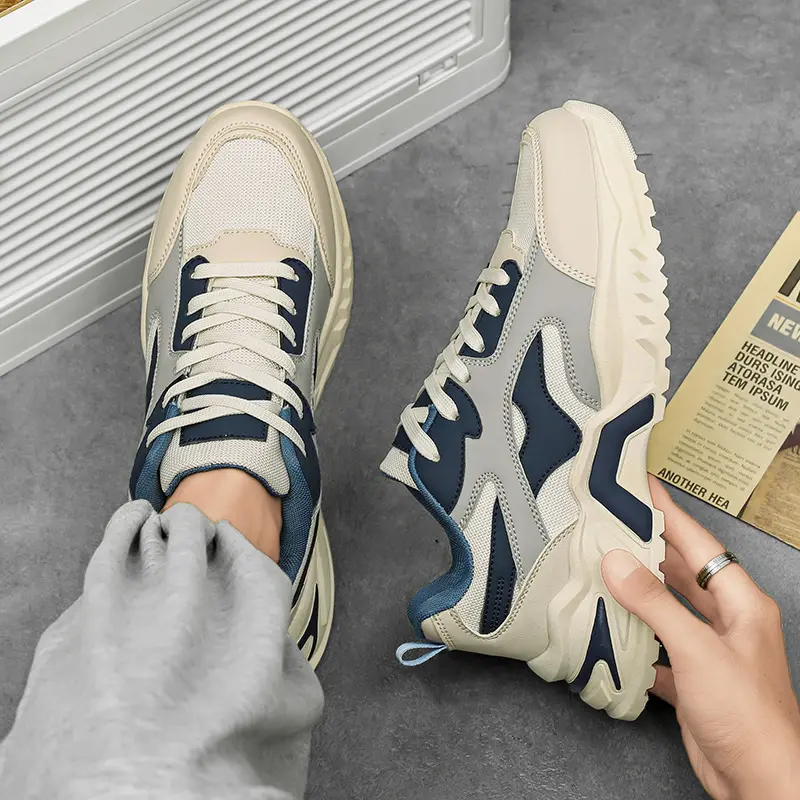 Newly Designed Summer Retro Sporty Mesh Lace-up Artificial Leather Walking Men's Casual Shoes Running Sports Sneakers Custom