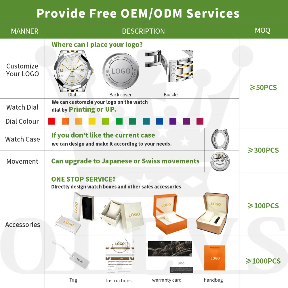 OEM 9998 Women Stainless Steel Strap Watch Original Quartz Movement Life Waterproof Luminous Dual Calendar