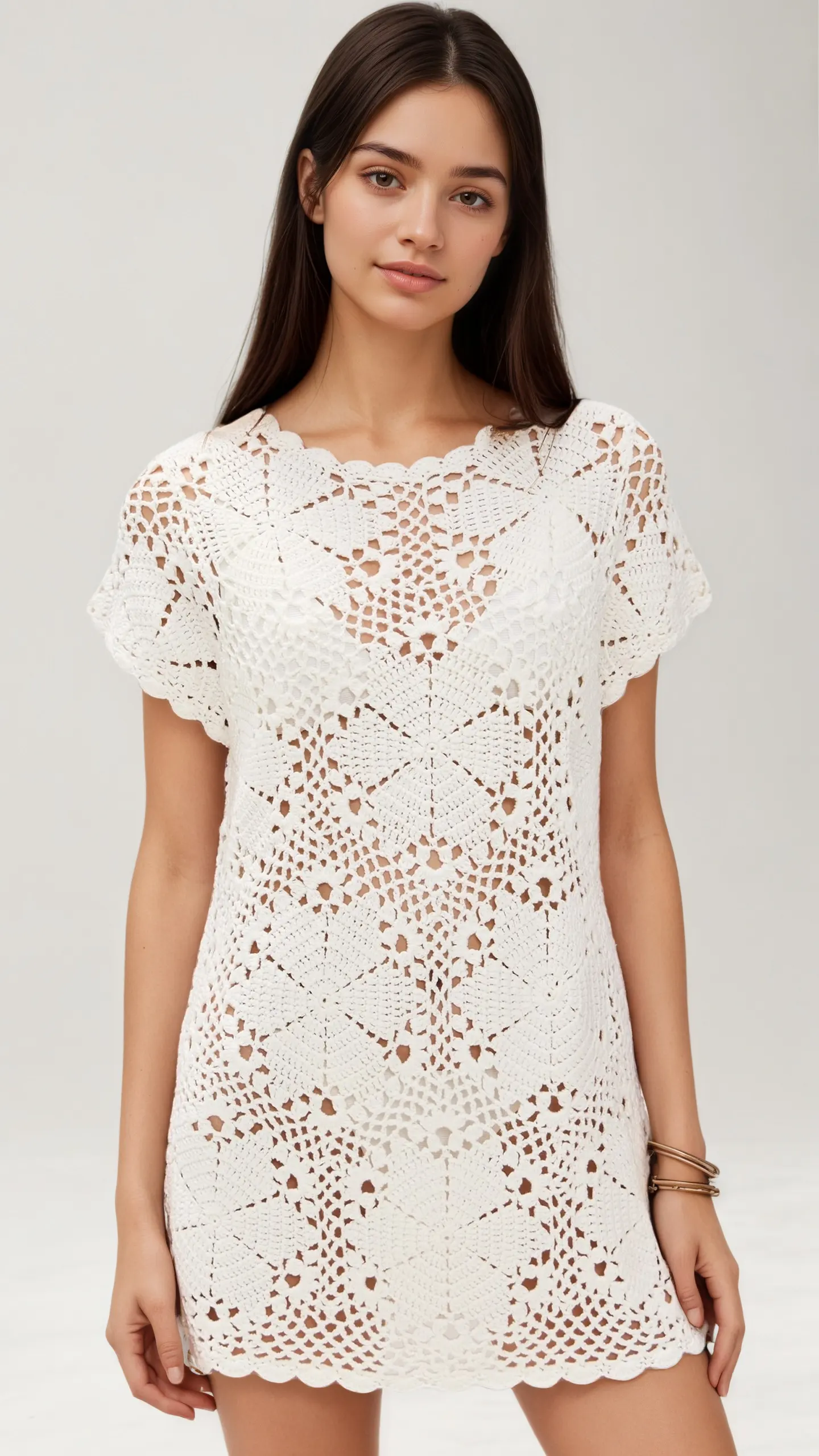 OEM/ODM Women's Knitted Fashion Casual Dress-Summer Breathable Solid Color Open-Weave Geometric Pattern Short Sleeve