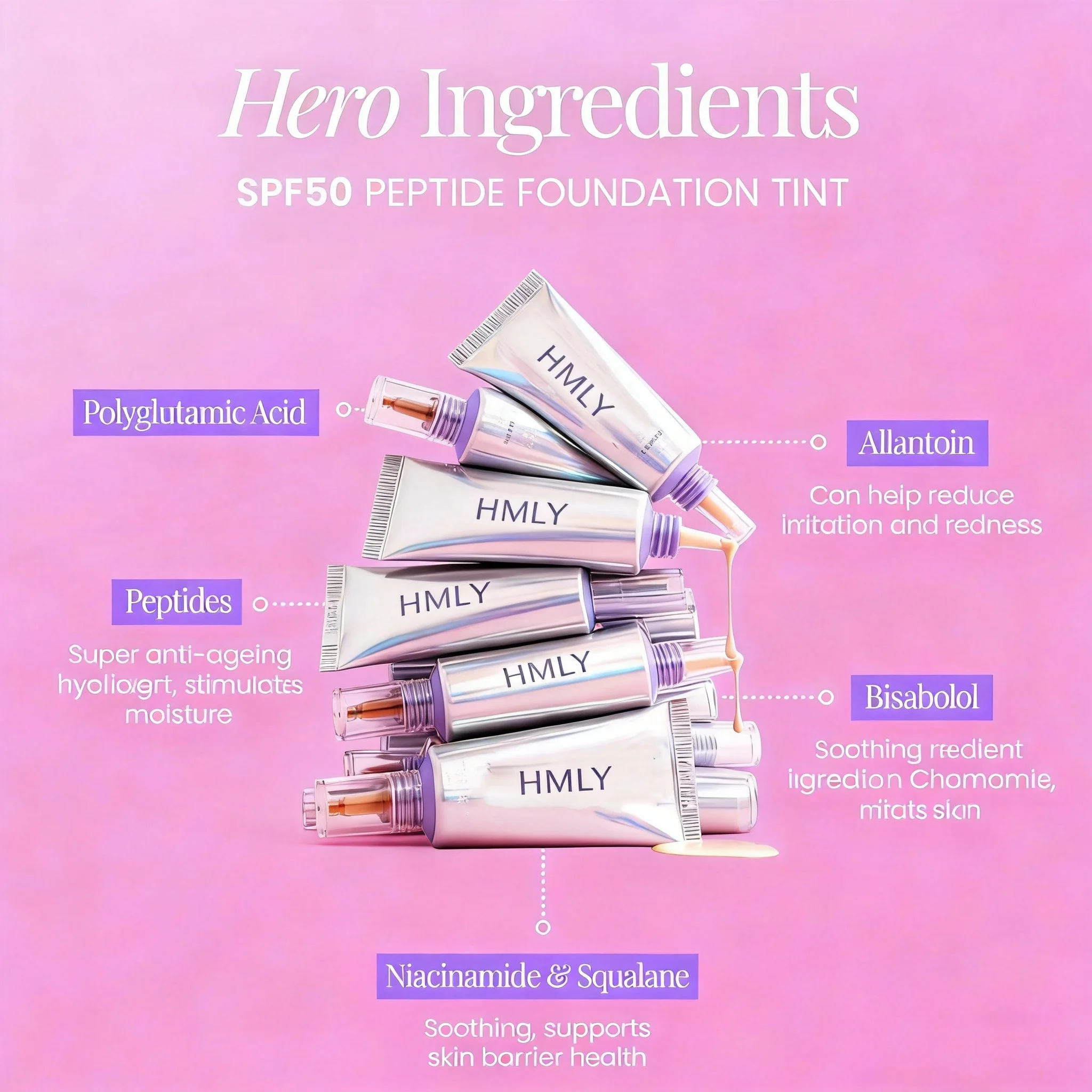 Private Label 100% Mineral SPF 50 Foundation Zinc Oxide Hyaluronic Acid Collagen Full Coverage Tinted Sunblock Cream OEM
