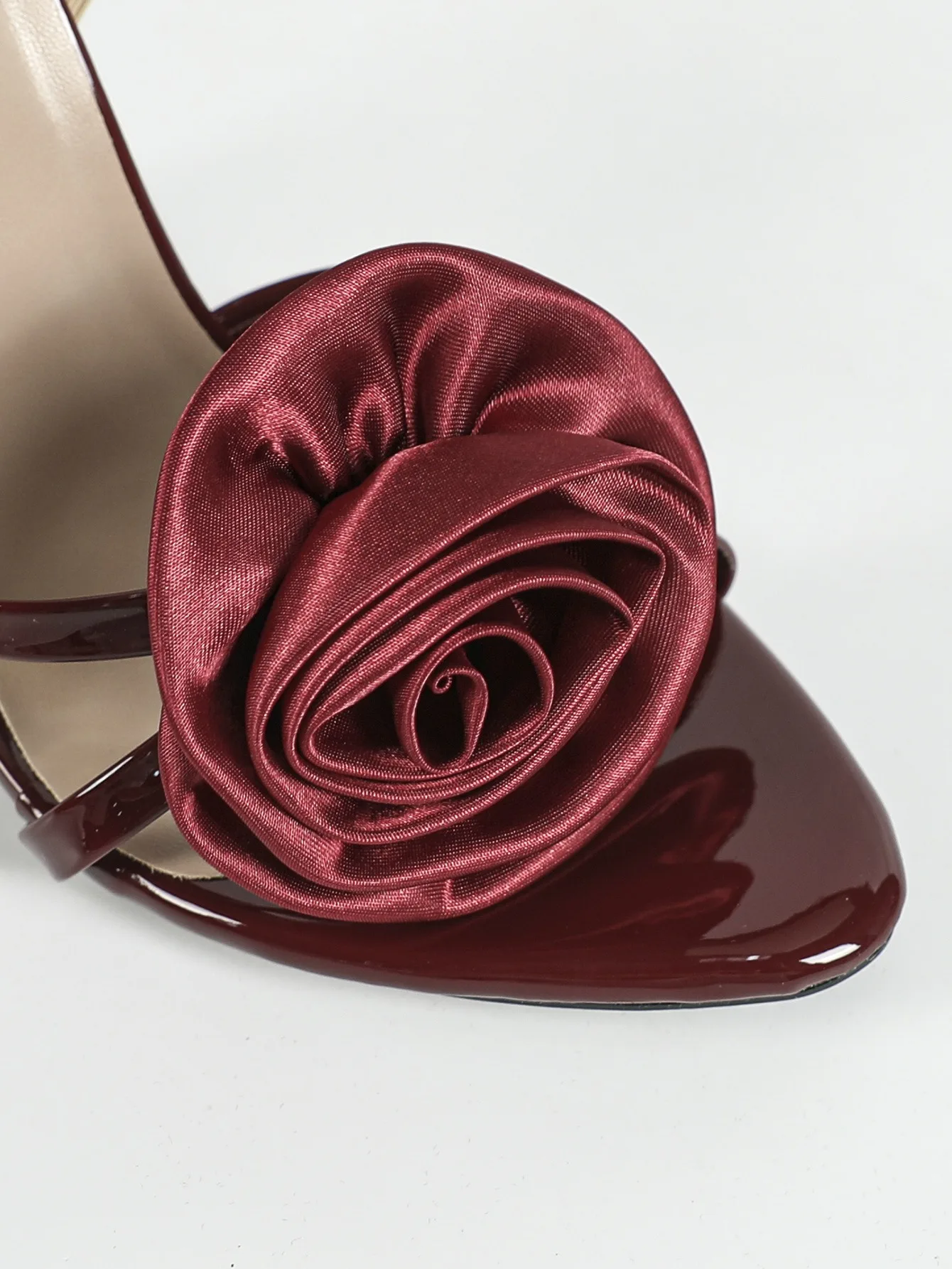 QuiteS 2025 Women's Summer Stiletto Sandals Elegant Rose Flower High Heels Open Toe Sexy Ankle Strap Nightclub Party Wedding Sandals