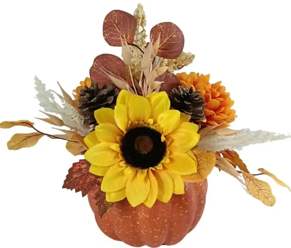 Real Touch Artificial Sunflower and Pumpkin Pot Office Home Wedding Party Decoration for Christmas
