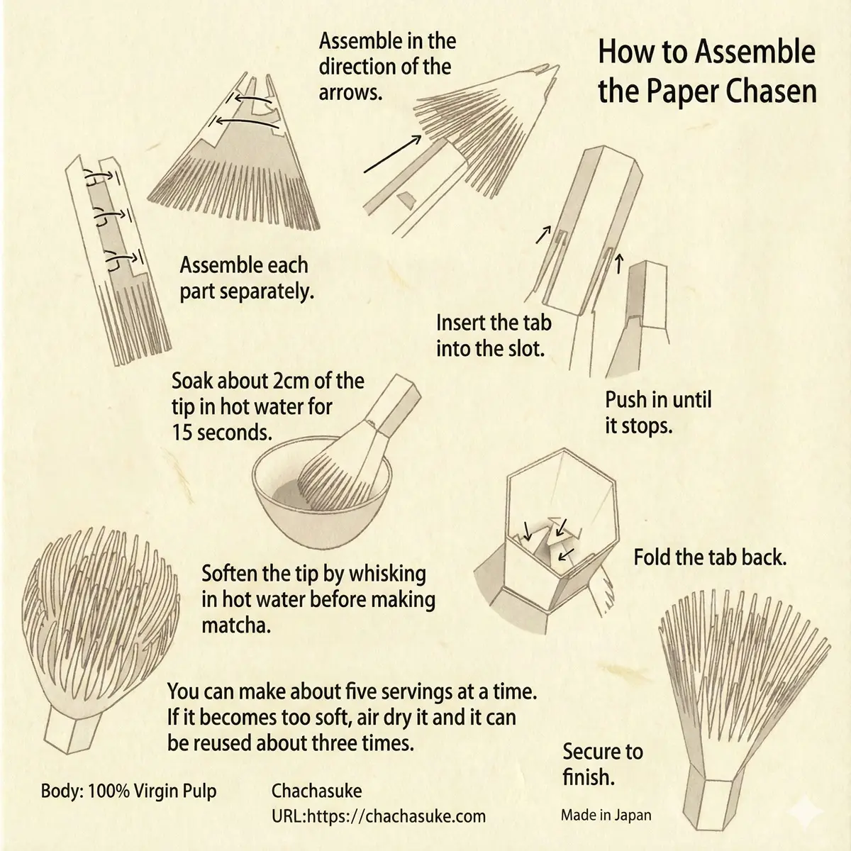 Sleek Compact Flat-Pack Simple Diy Assembly Portable Paper Matcha Whisk Kit For Tea Tools