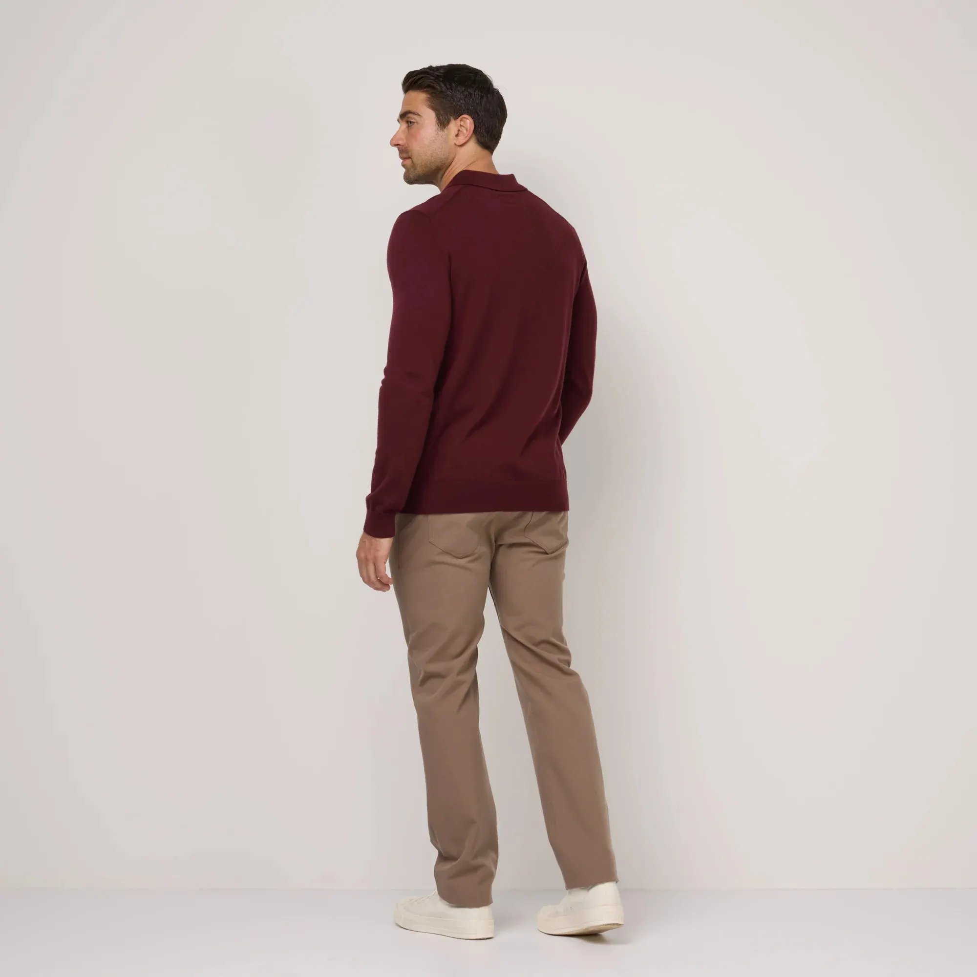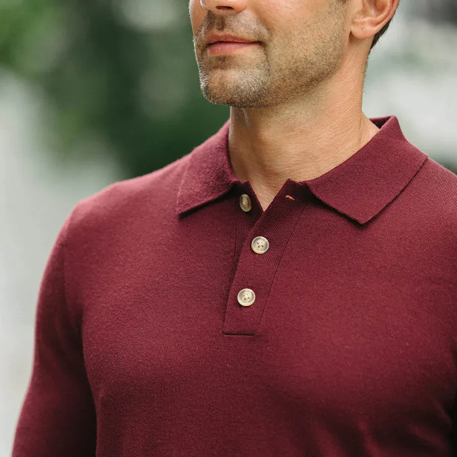 Solid Color Fit Merino Wool Thermal Breathable Men Long Sleeve POLO Shirt Fashion Style Sweater