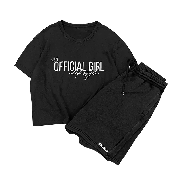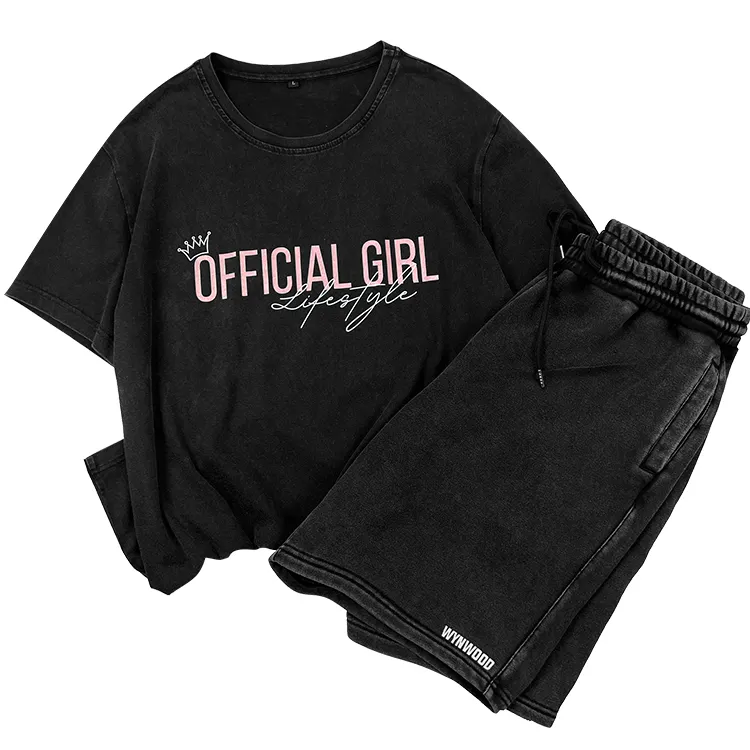 Streetwear Washed Distressed Unisex Mens Summer 2 Piece Men Tshirt and Shorts Set
