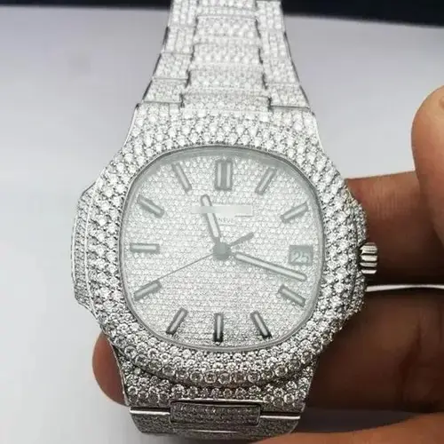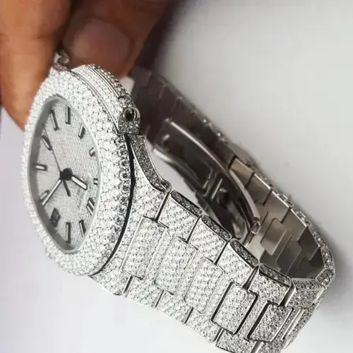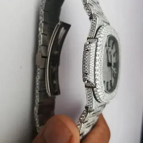 Stylish Custom Logo Luxury Hip Hop Mechanical Stainless Steel Watch Band Embellished Moissanite Diamonds Analog Dial Unisex