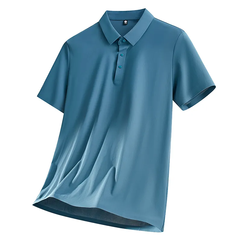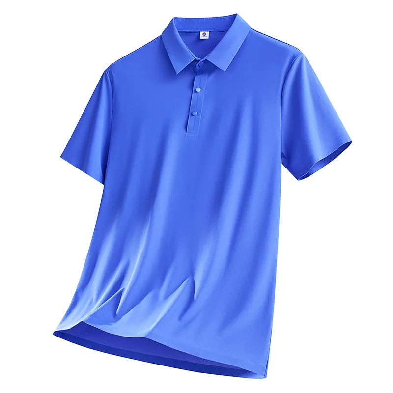 Summer Men's Business Casual Embroidered Solid Anti-Pilling Breathable 100% Polyester Knitted Short Sleeve Shirt