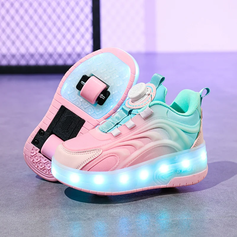 Unisex LED Light-Up USB Charge Roller Skate Shoes Kids' Sport Sneakers with Flashing for Boys and Girls Gifts