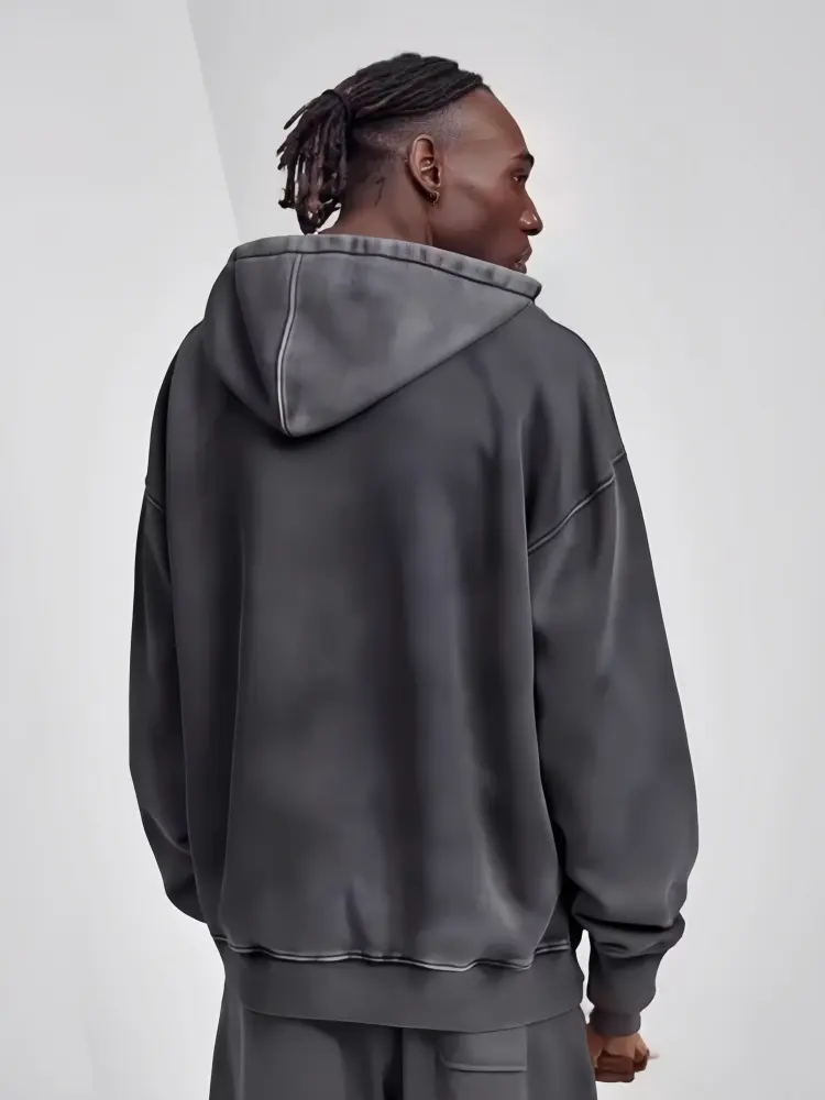 Vintage Batik Washed 100% Cotton Men's Zipper-Up Hoodie Loose Fit with Hooded Collar Solid Terry Lining Anti-Pilling for Autumn
