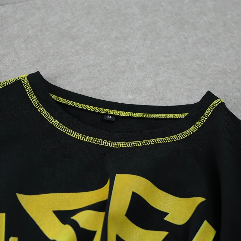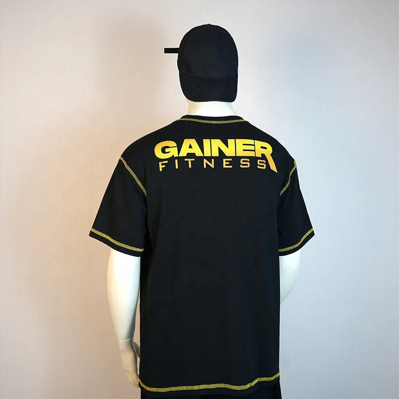 Wholesale Good Quality t Shirts Custom Digital Printing Contrast Stitch Fitted Short Sleeve Black t Shirt for Men