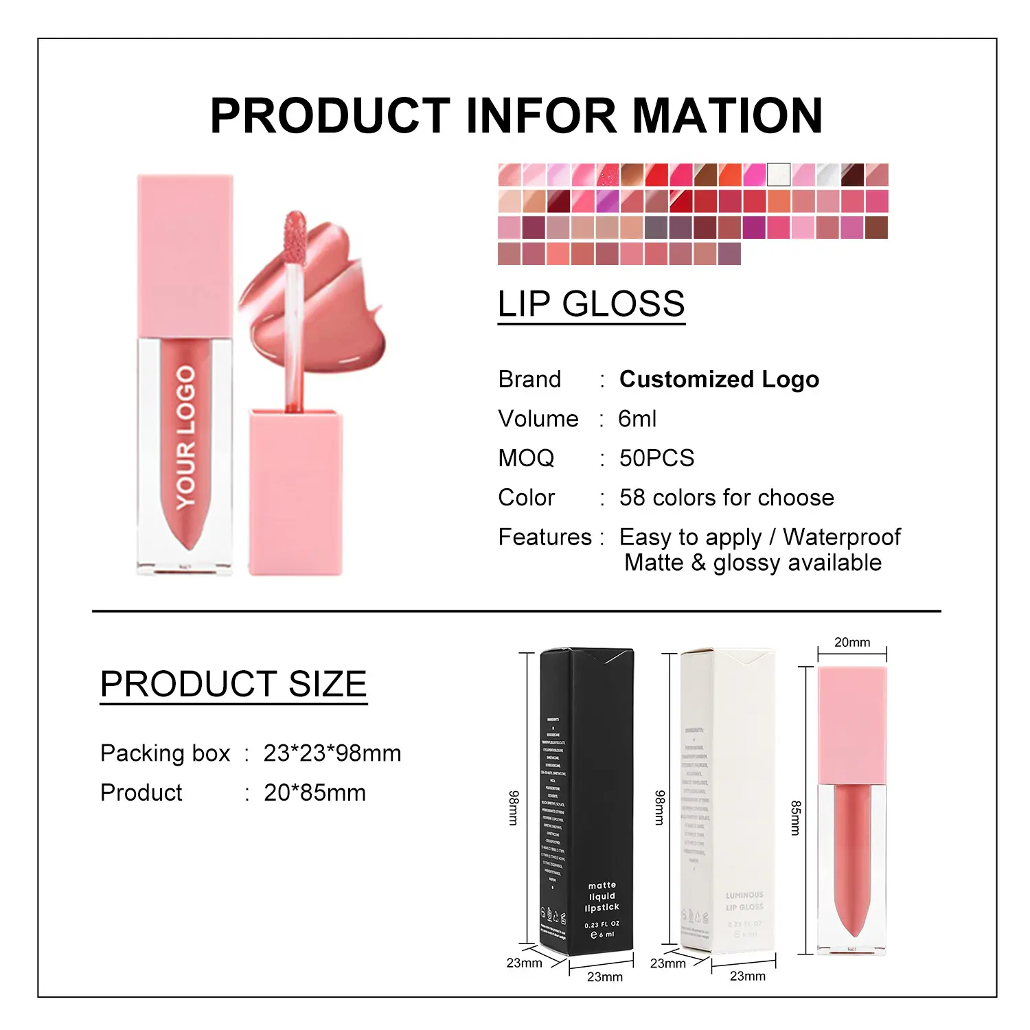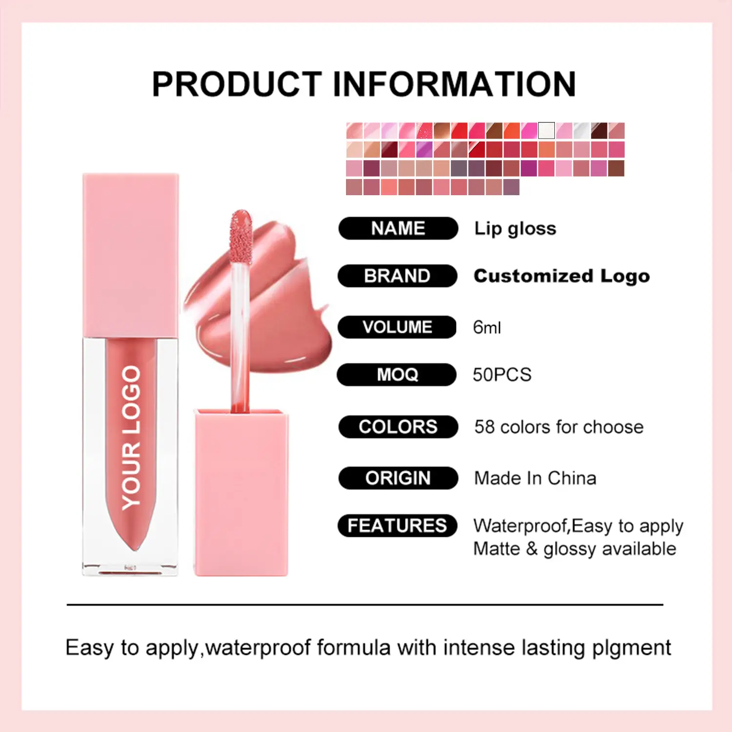 Private Label Glossy/Shimmer/Matte High Pigmented Liquid Lipgloss Own Brand Lip Cosmetics Wholesale