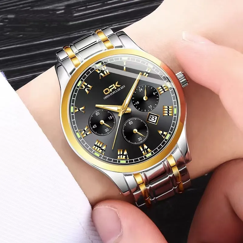 Custom Stainless Steel Japan Movement Calendar OEM Gold Luxury Watch Men Uhren High Quality Quartz Watch Orologio Uomo