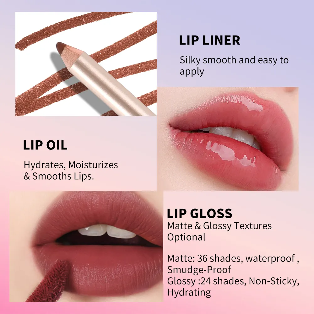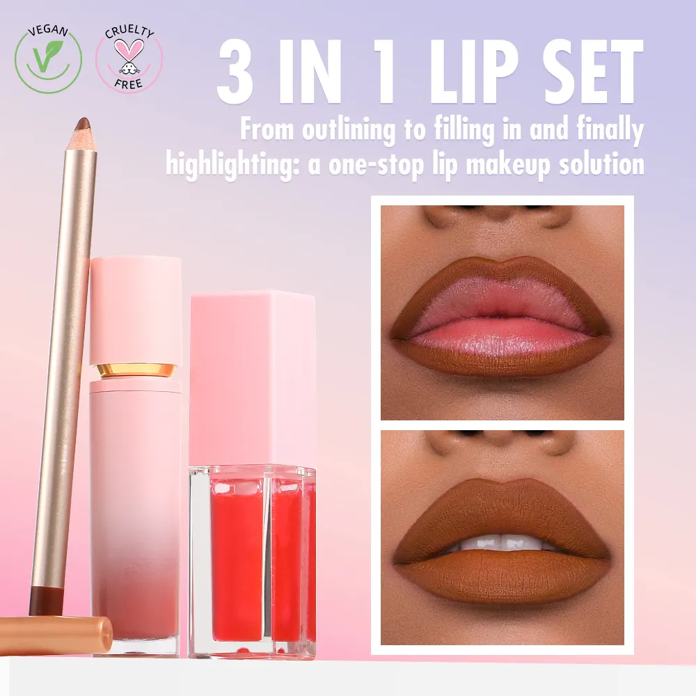 Wholesale Private Label Makeup Custom Logo Cosmetics 3 in 1Matte Cruelty Free Cosmetics Lip Kit Gift Sets