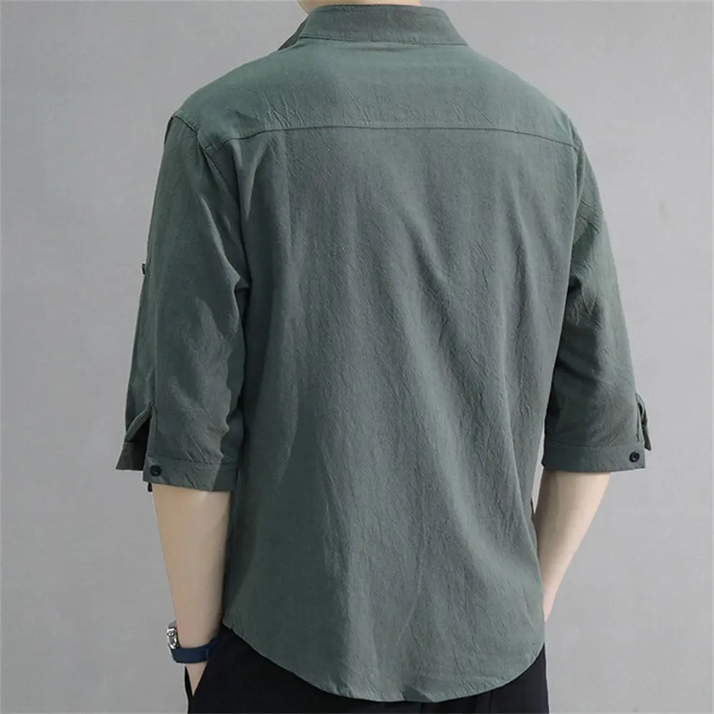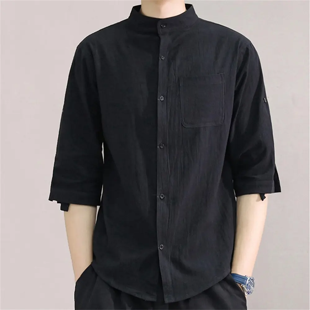 Wholesale Comfortable Breathable Cotton Linen Mens Casual Shirt Embroidery logo