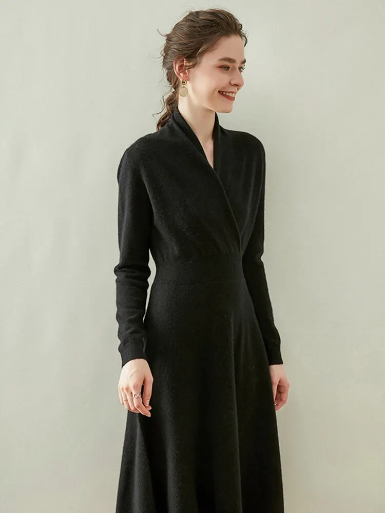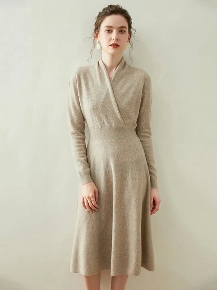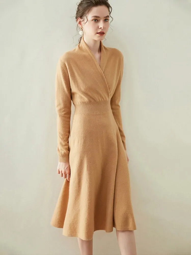 Wholesale Winter Long Sleeve Knit Dress French Style Custom Fall Elegant Casual Long Autumn Women Cashmere Sweater Dresses