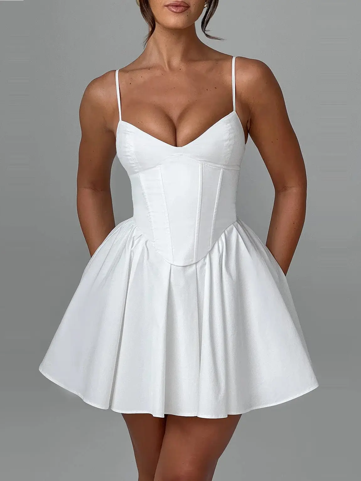 Wholesale Woven Mini Bodycon Solid White Yellow Slim-Fit V-Neck Casual Party Summer Sexy Women's Sling Dress SKINNY Fit