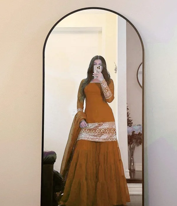 Women Faux Georgette Sharara Salwar Kameez Fashionable Party Wear Ethnic Suit with Embroidered Kurta Sharara Bottom