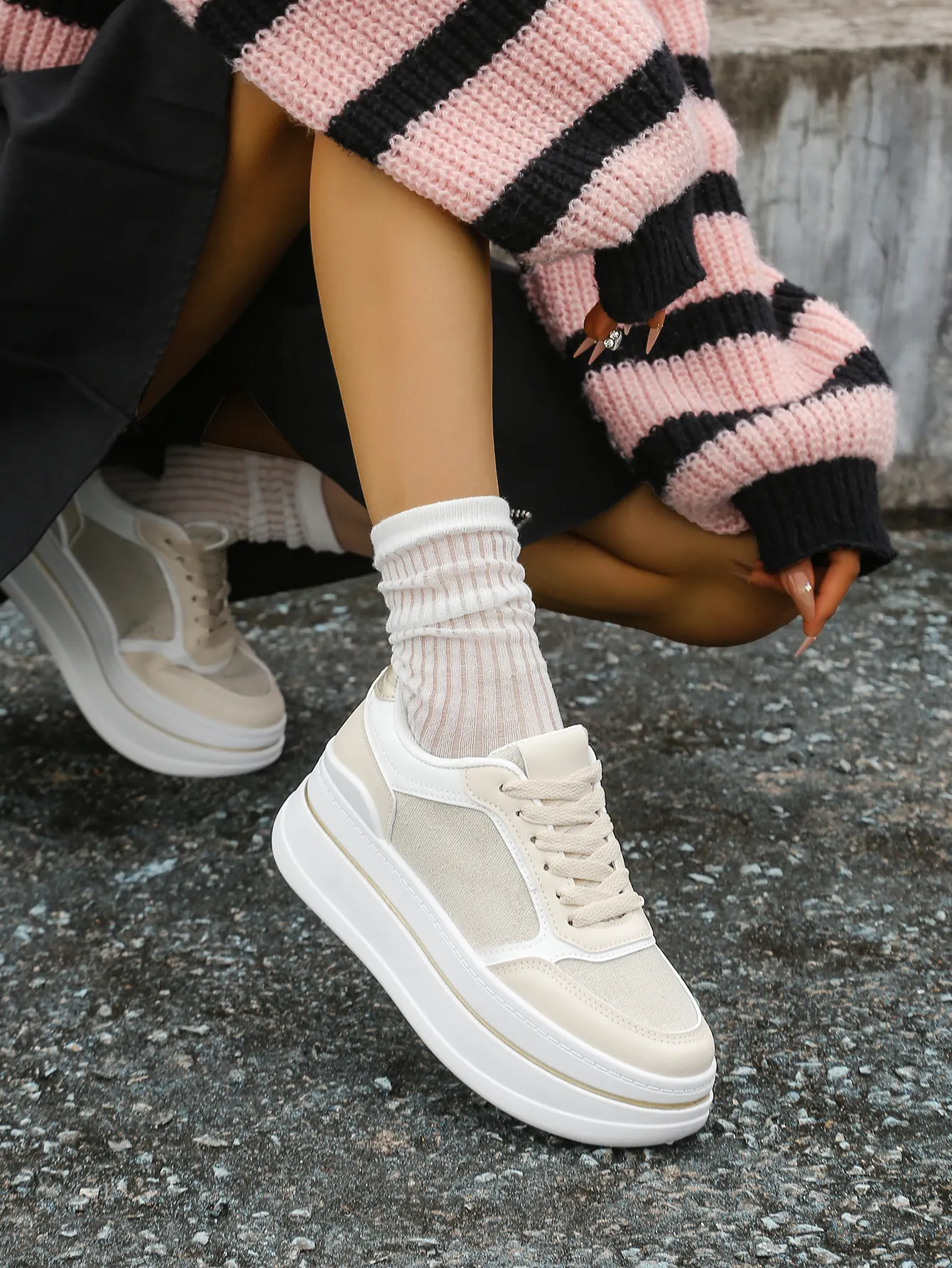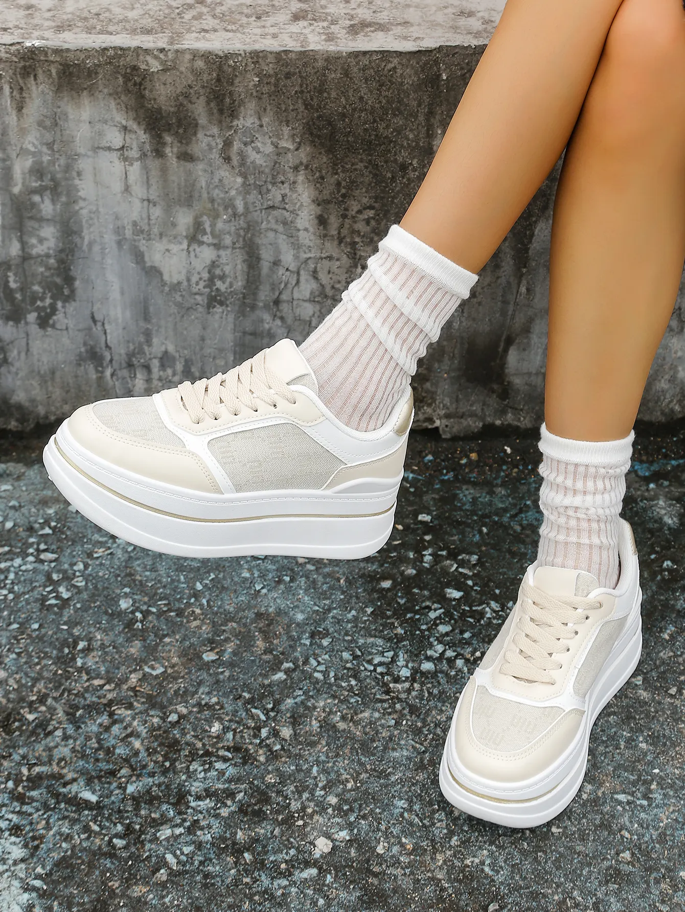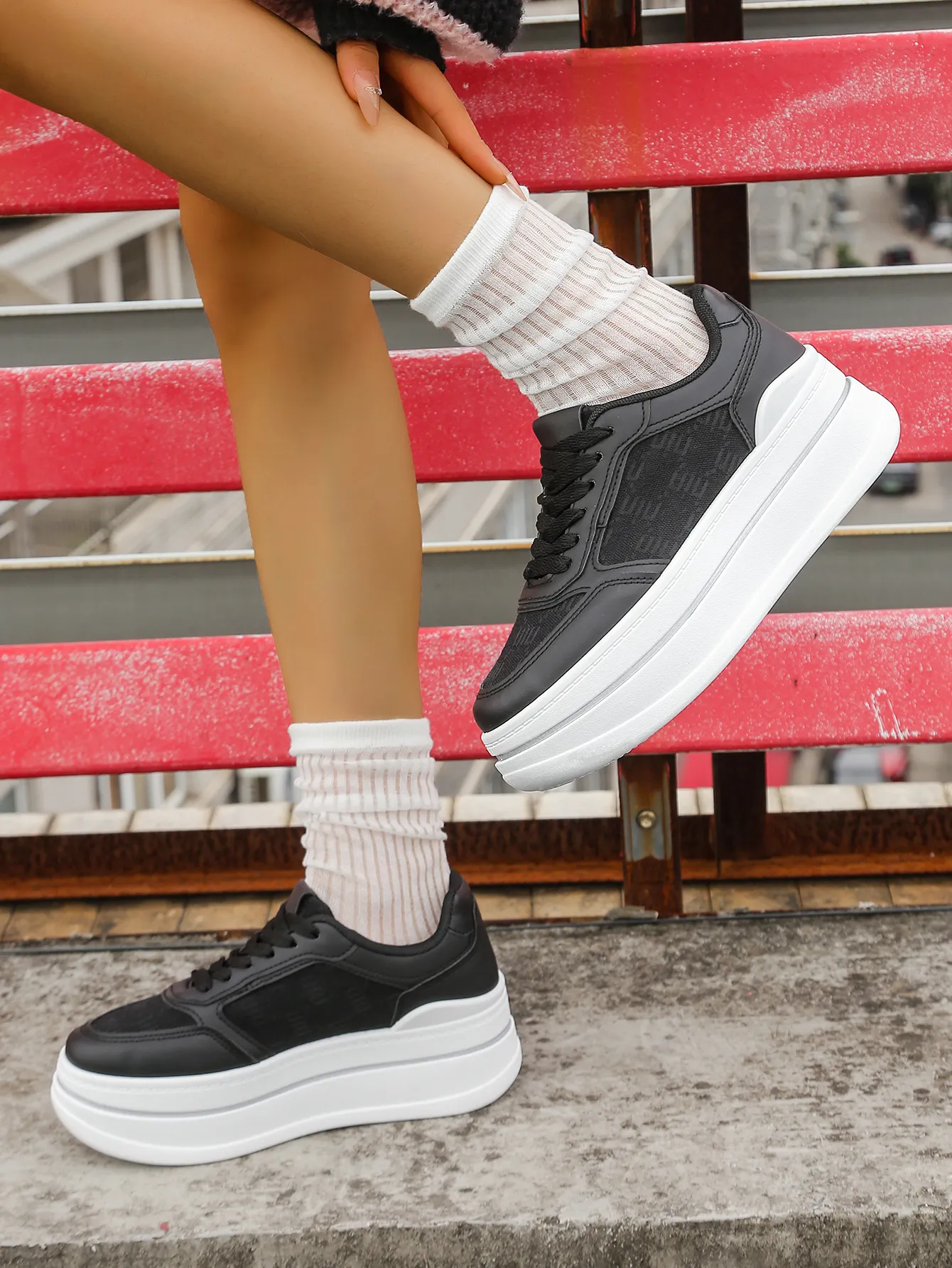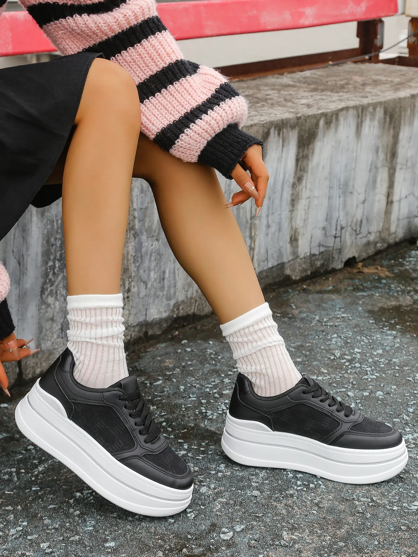 Women's Casual Skateboarding Sports Shoes Thick Sole Height-Enhancing Fashionable & Versatile Slip-On Design