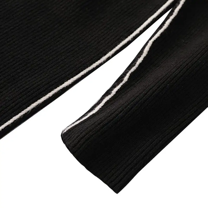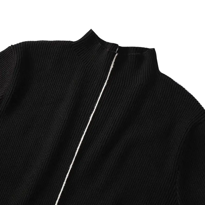 Women's Winter Pit Belt Knitted Dress, Cotton Long Sleeved Sweater Dress, Color Patchwork Zipper Collar Knitted Dress