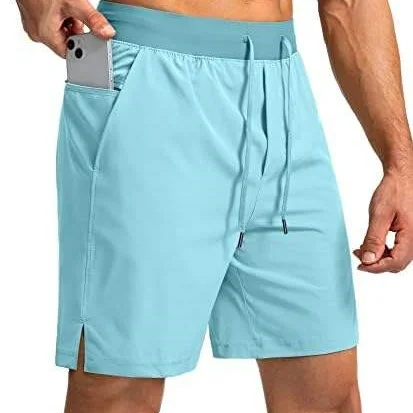 YOUMI Custom OEM Solid Spandex Split Hem Drawstring Fitted Workout Running Breathable Elastic Fourway Stretch Men's Gym Shorts